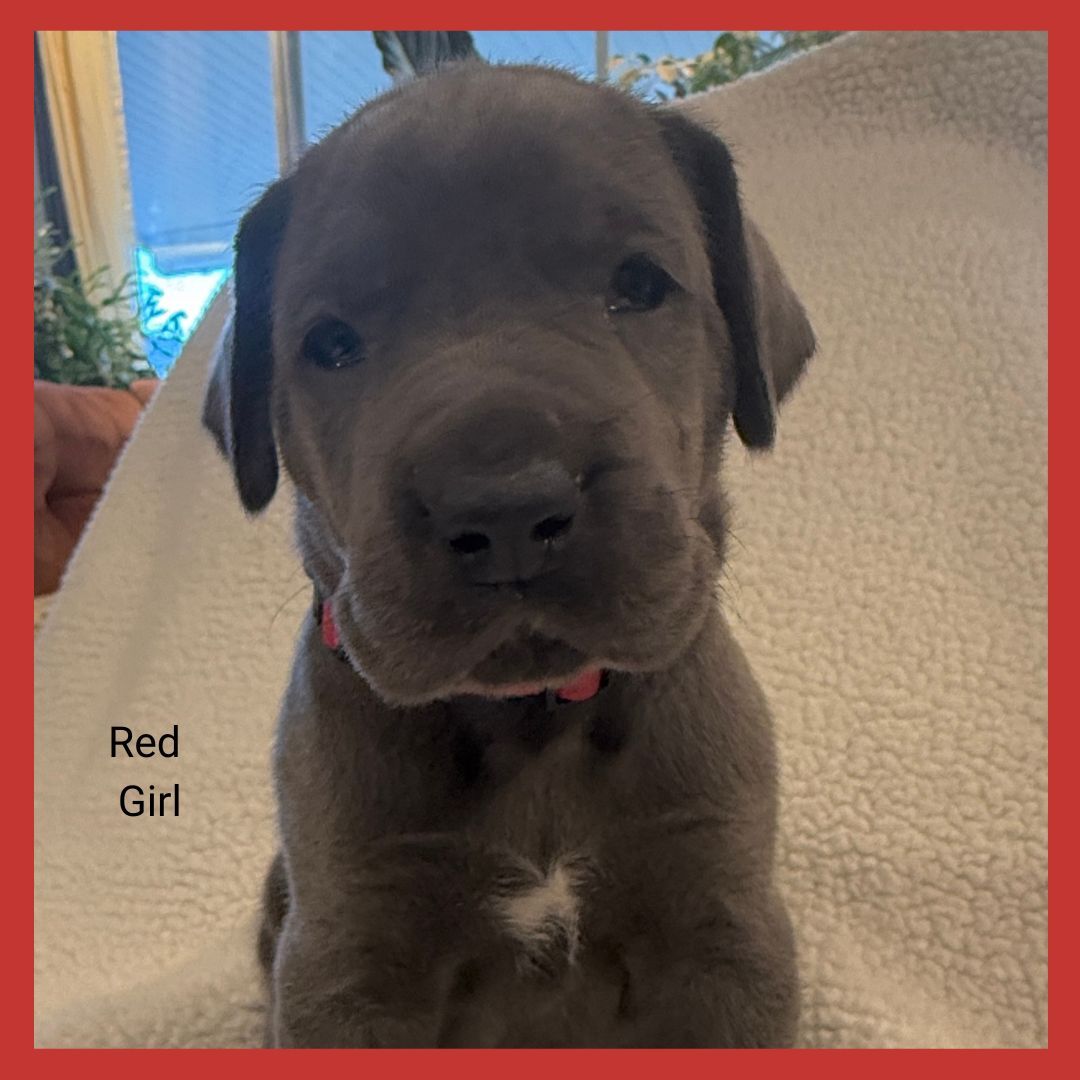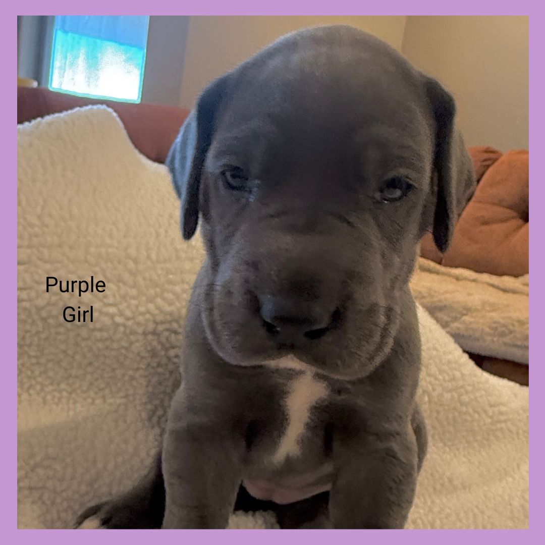 About the parents:• Dam: American Great Dane, DNA tested and clear of genetic markers for common Great Dane health issues. She has a great temperament and is an excellent mom. • Sire: European Great Dane, with a solid build and classic European look.