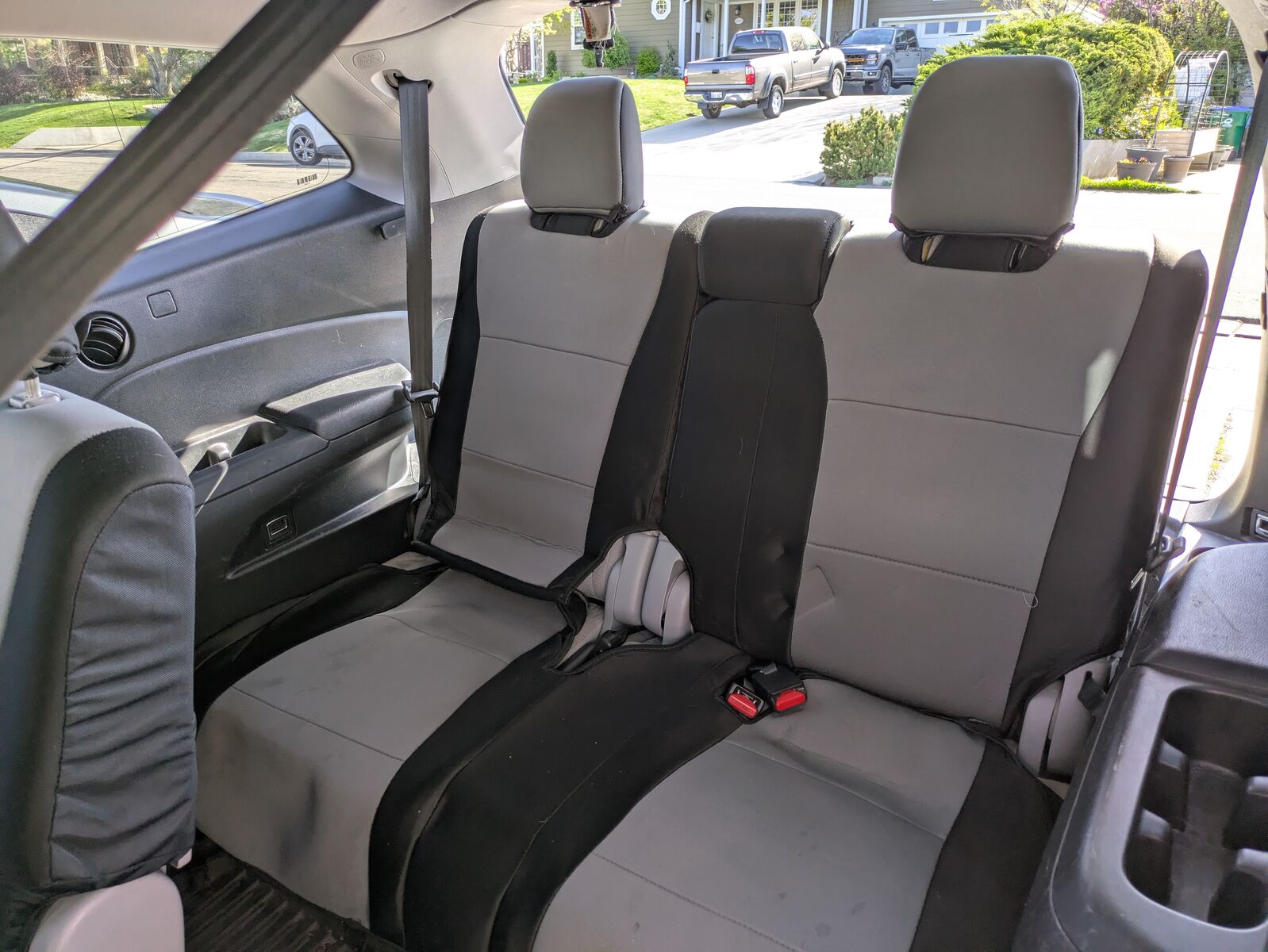 VenmoUsed neoprene seat covers with one hole in the middle row on the drivers side. All pieces included (arm rests, head rests, seats, etc) for all three rows of seats.