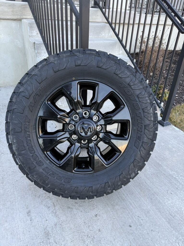 ApplePaySet of 4-Dodge Ram 3500 Limited Night Edition Rims And Tires 35/12.50R20 Toyo AT3 Load E in excellent condition,asking $3400 obo Tires are new Rims have only 100 miles I can sell the rims or tires separately Bolt pattern 8-6.5 Text anytime 385-402-2292 I have Nitto ridge grappler and toyo rt pro same size