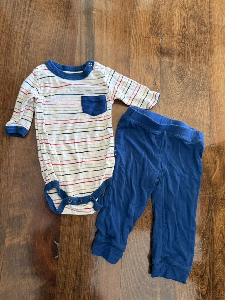Baby kickee pants brand set striped top blue pants 0-3 month