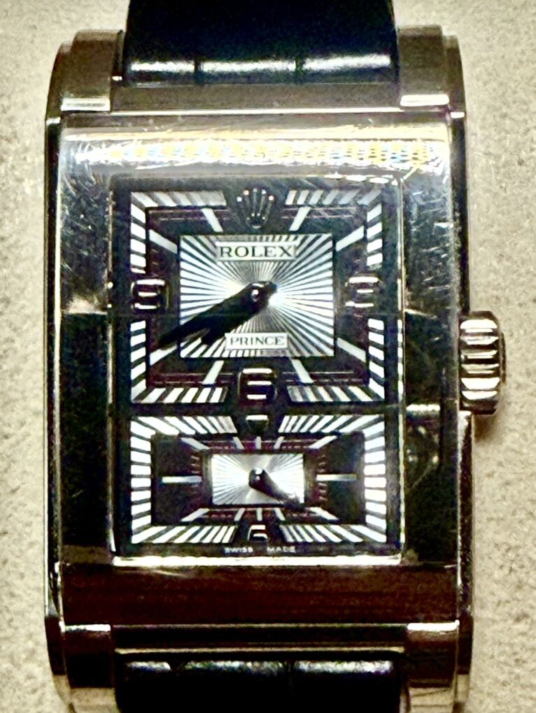 Forget the waitlists and the mass-produced steel divers. This is a Rolex for the individualist — the only modern reference from the Crown to feature a manually wound movement visible through a factory sapphire exhibition caseback. Up for sale is my personal Rolex Cellini Prince, Ref. 5443/9. Purchased brand new from an Authorized Dealer in it's first year of production, this watch has been meticulously cared for as part of a private collection. I haven't worn the watch in a decade, so I decided to give it new life. Reference: 5443/9 (18k White Gold) Serial: D-Prefix - Circa 2005 Condition: Very Good. Crisp case lines, sharp Rayon Flamme de la Gloire guilloche dial, and flawless sapphire crystals (front and back). Strap: Includes the original Rolex black crocodile strap with the correct 18k White Gold butterfly deployant clasp. The Movement: The Calibre 7040-1. It isn't just a movement; it's a piece of architecture. Finished to mirror the dial's pattern, it remains one of the most decorated movements Rolex has ever released. It keeps perfect time. Why Buy This Piece? While the original box and papers were lost during a move, the watch’s condition speaks for itself. Being a single-owner piece, it hasn't been passed around the secondary market or over-polished by multiple dealers. This is an honest, high-complication Rolex that offers Stealth Wealth in its purest form.