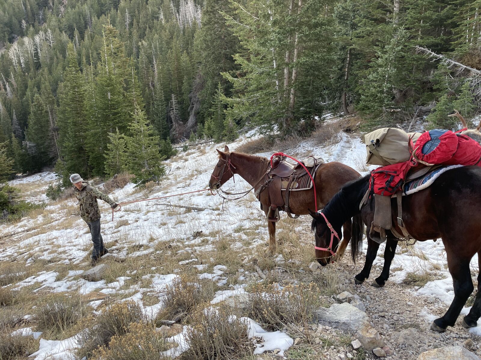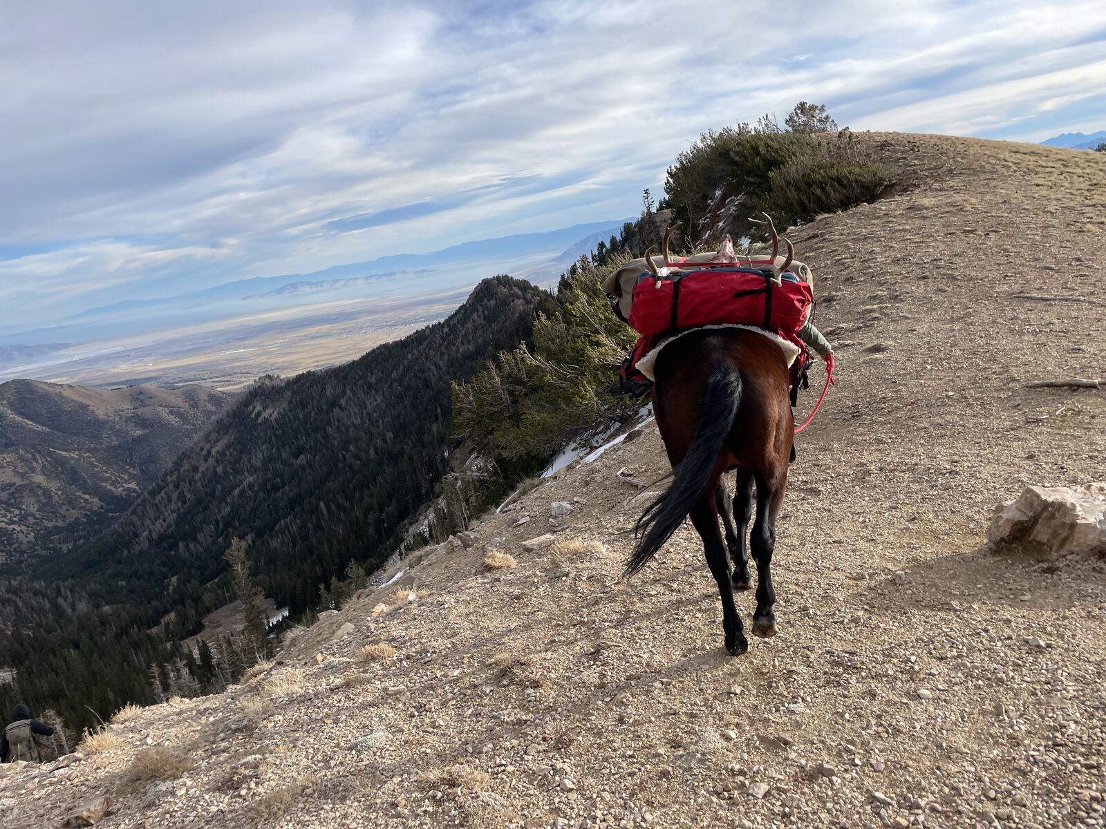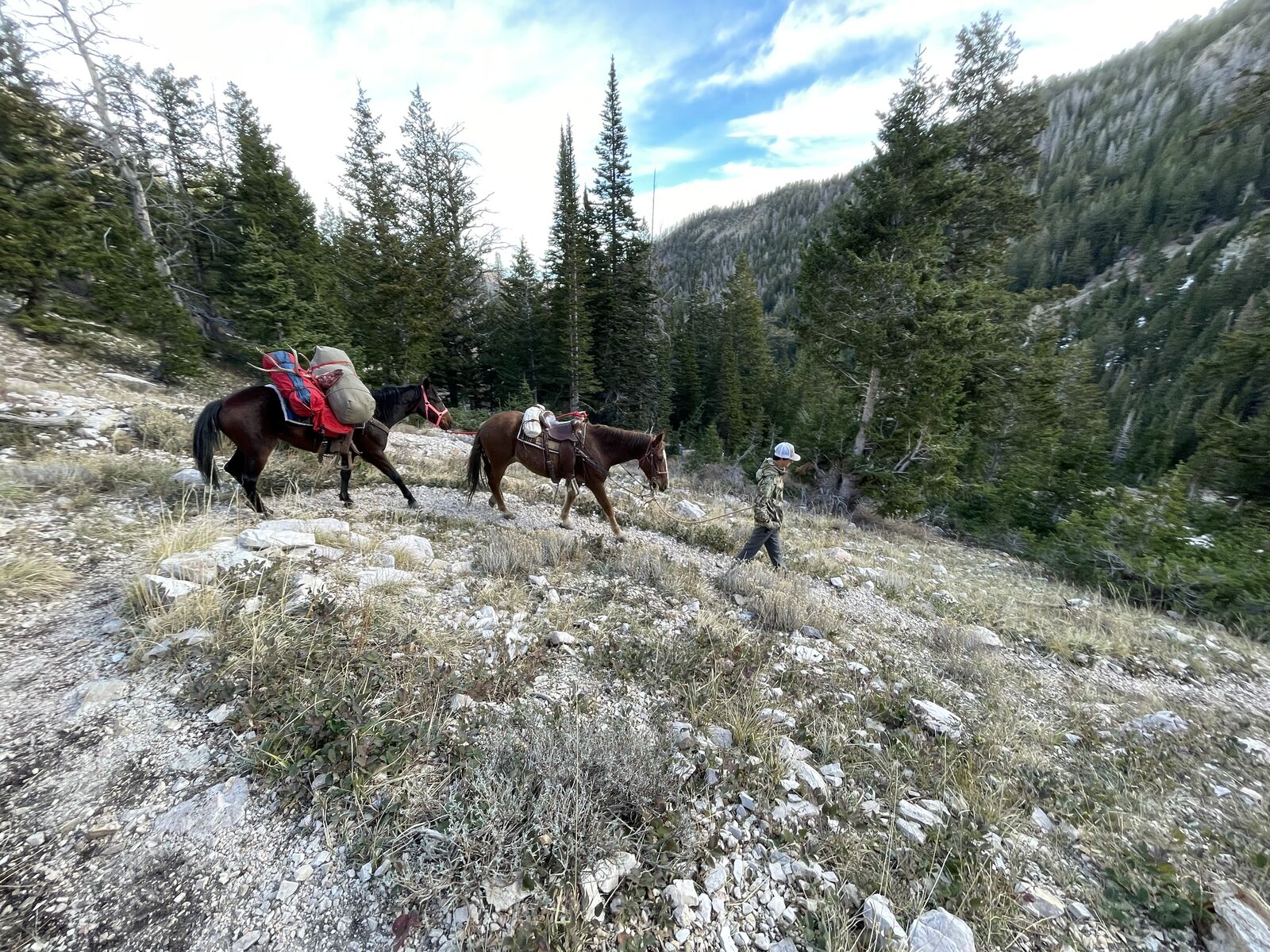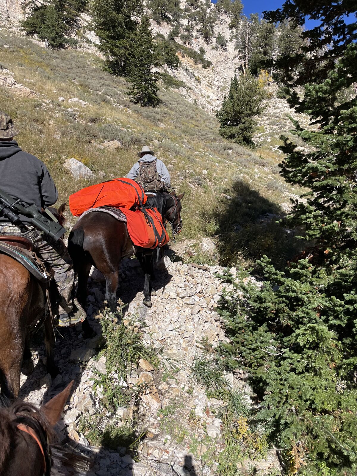 2019 bay mustang mare. She is good with her feet and does amazing with the Ferrier. loads and is an easy keeper. She has been used for hunting and crosses dead fall. we have packed numerous deer and supply to the back country. She has has 30 days on her recently and does great in the round pen. she Is still green broke and has done great on trail rides. she Is needing someone to take here the rest of the way and give here a good home. We are asking $2500