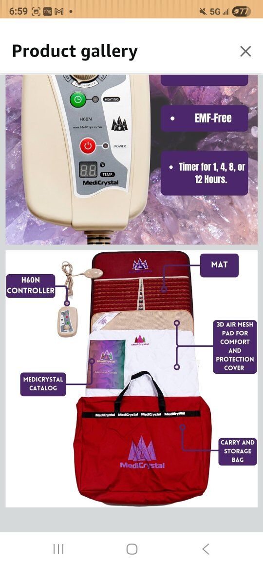 MediCrystal Infrared Heat Amethyst & Tourmaline Mat - Full Size 72"x24" - Adjustable FIR Heating 86-158°F - Deep Warmth Hot Stone Pad - Whole Body Comfort & Health - New in box with carry case and protection pad/cover
