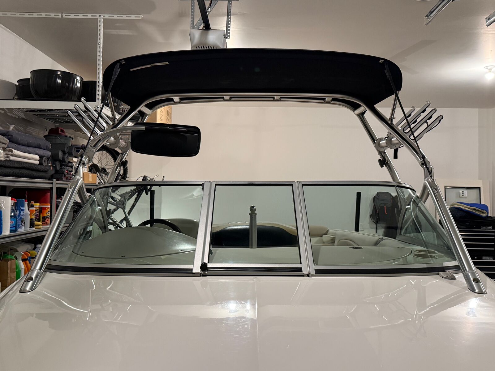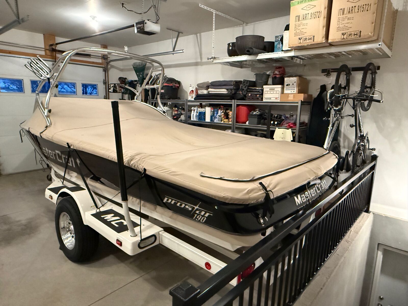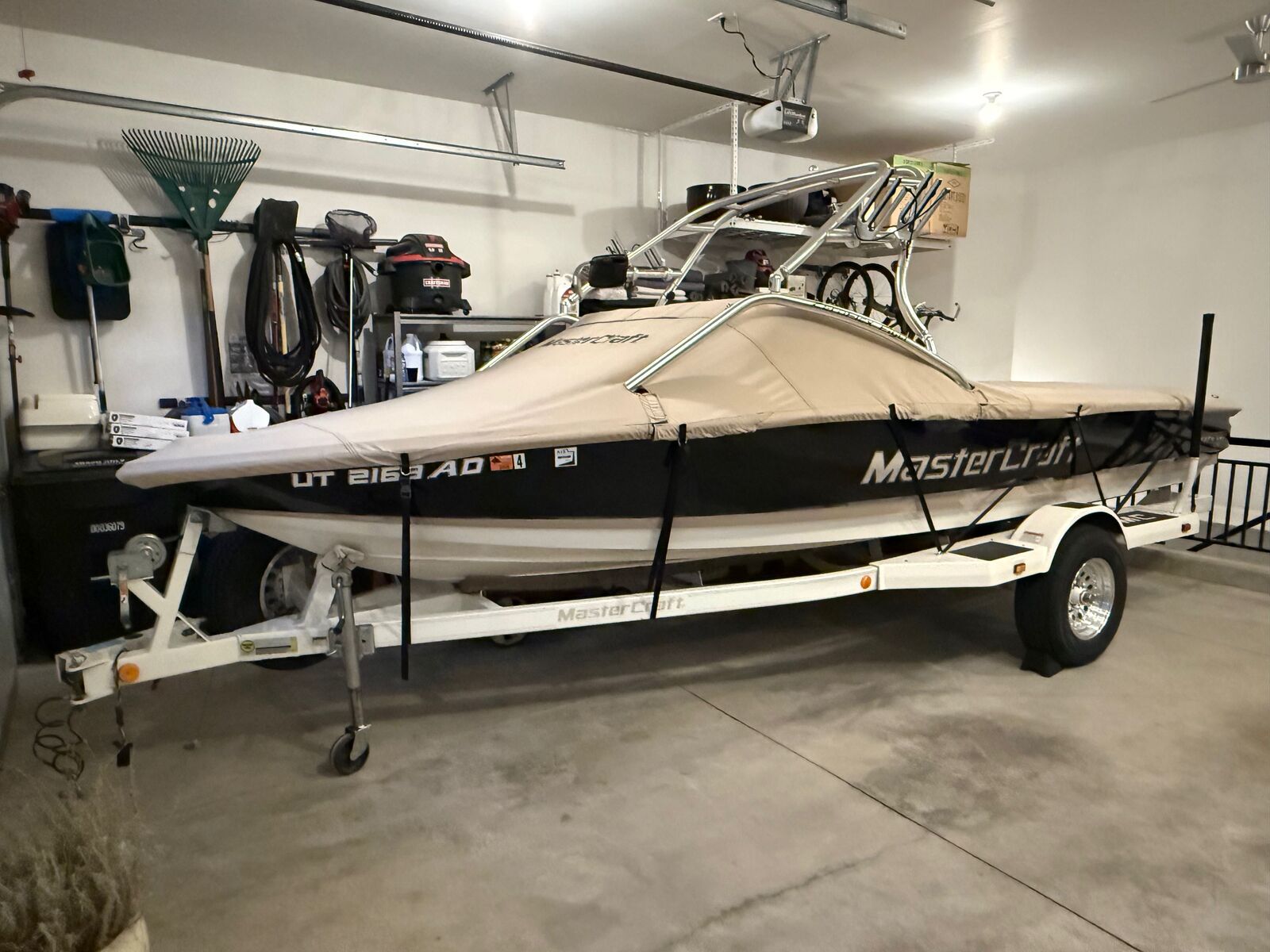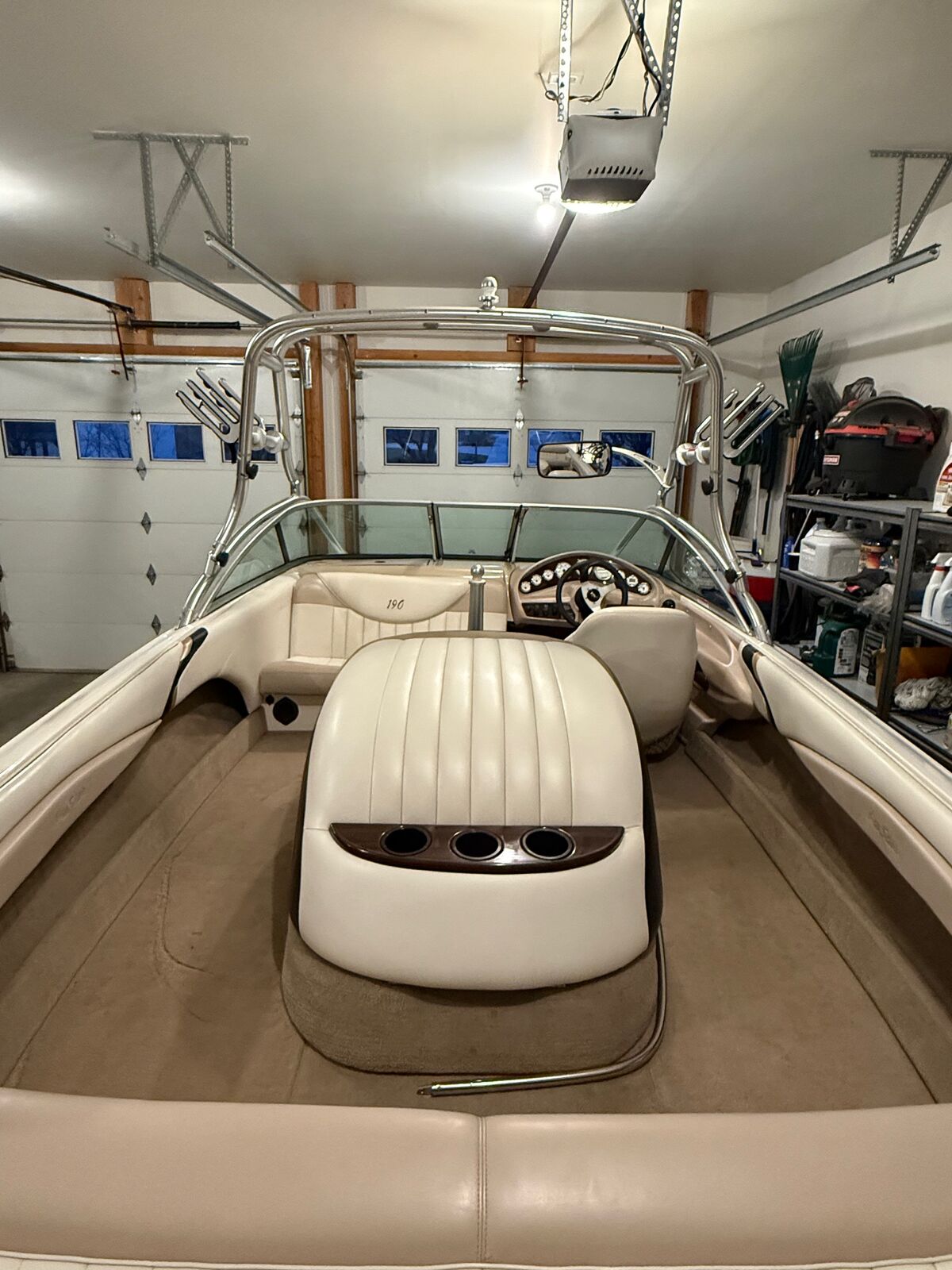 The Prostar 190 EVO is the premium water ski tow boat from Mastercraft. The hull design creates one of the best wakes for slalom skiing. The overall length is 19'-8" & overall width is 91" per the 2001 specifications. The boat weighs approximately 2,620 lbs + another 860 lbs for the single axle Mastercraft trailer. The fuel capacity is 28 gallson. The current hours on this boat are 866. The boat has the 5.7L TBI EFI 350 cubic inch GM V-8 which generates 310 horsepower. The boat is equiped with a high altitude propellor so no problem pulling a skier out of the hole at elevation. This boat was a promotional boat for Mastercraft in 2001 & was equipped with a custom zero-flex tower that also serves as the bimini. The boat was originally used for tournaments & was purchased & maintained by the same owner since 2002. The boat has always been stored indoors & has been exeptionally maintained over the years. The interior is still original so showing some age particulary on the rear seat. The trailer is equipped with new tires as of last season. The boat was outfitted with a new JL Audio sytem with head unit. amplifier, speakers, & subwoofer mounted in the driver foot well. You will be hard pressed to find a cleaner 2001 ski boat!