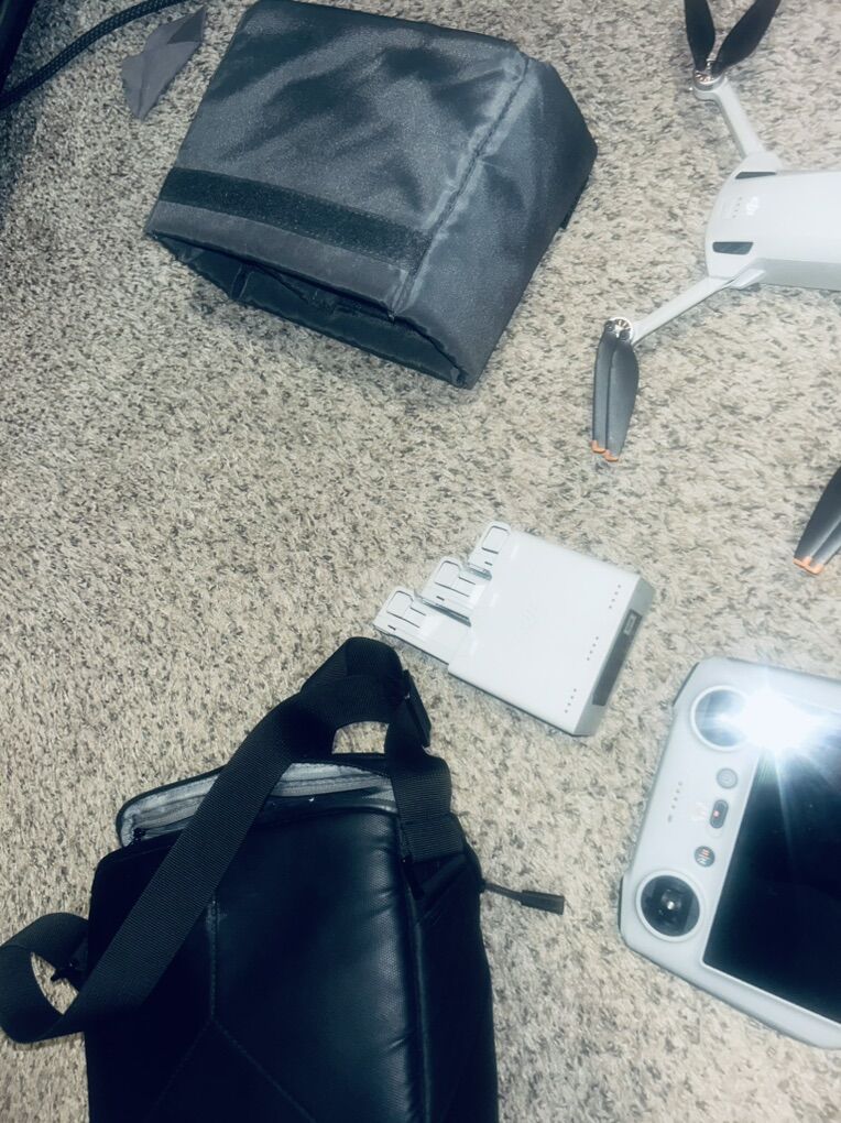 2 drones for trade, DJI mini 3 and DJI mini 3 pro, 3 batteries, 2 controllers, 2 carrying bags