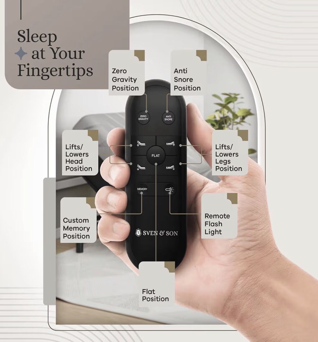 Rest and Relax in Style: Whether you're watching TV, reducing snoring, or simply reading - this Sven & Son adjustable bed transforms your bedroom into a luxury retreat. Our adjustable bed bases are designed to work with any mattress brand or build, including latex, memory foam, spring, or air mattresses.”
