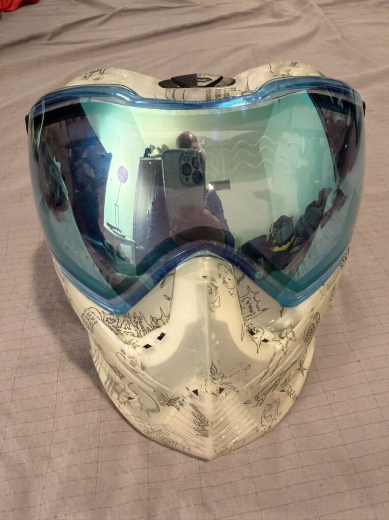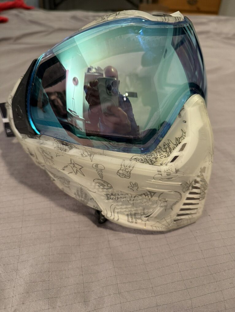 VenmoUp for sale is a Push Unite Paintball Mask in a Custom White Graphic design. The mask is in flawless condition and runs for $200. Great coverage, incredible lens and comfort.