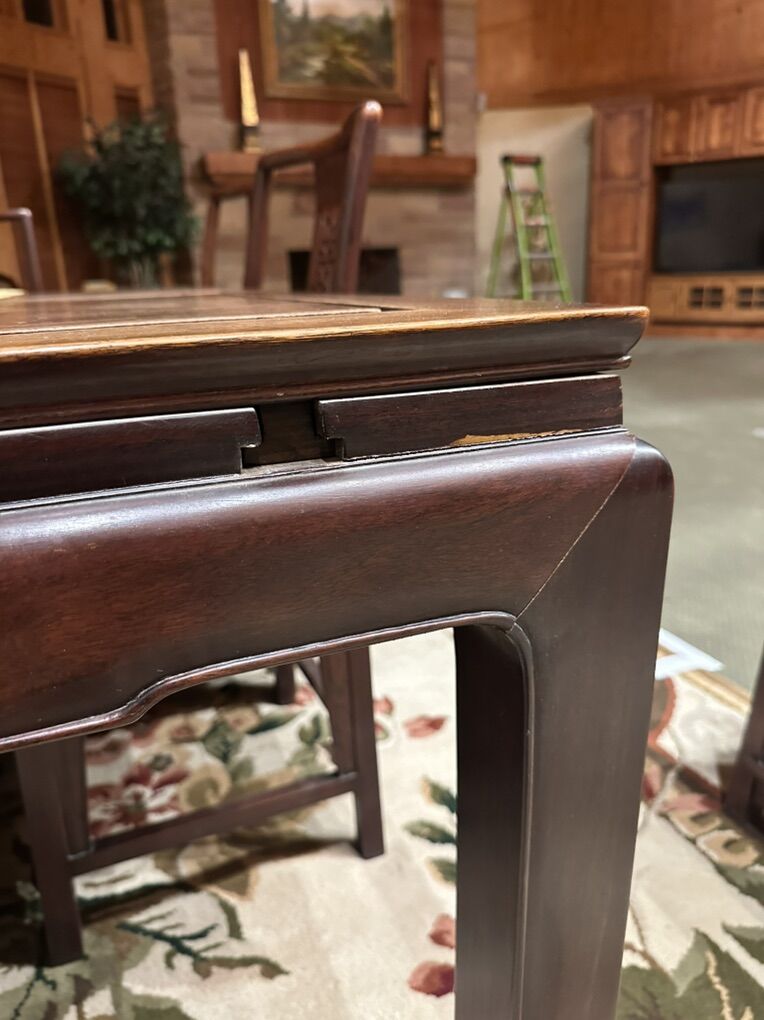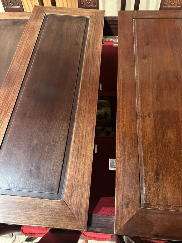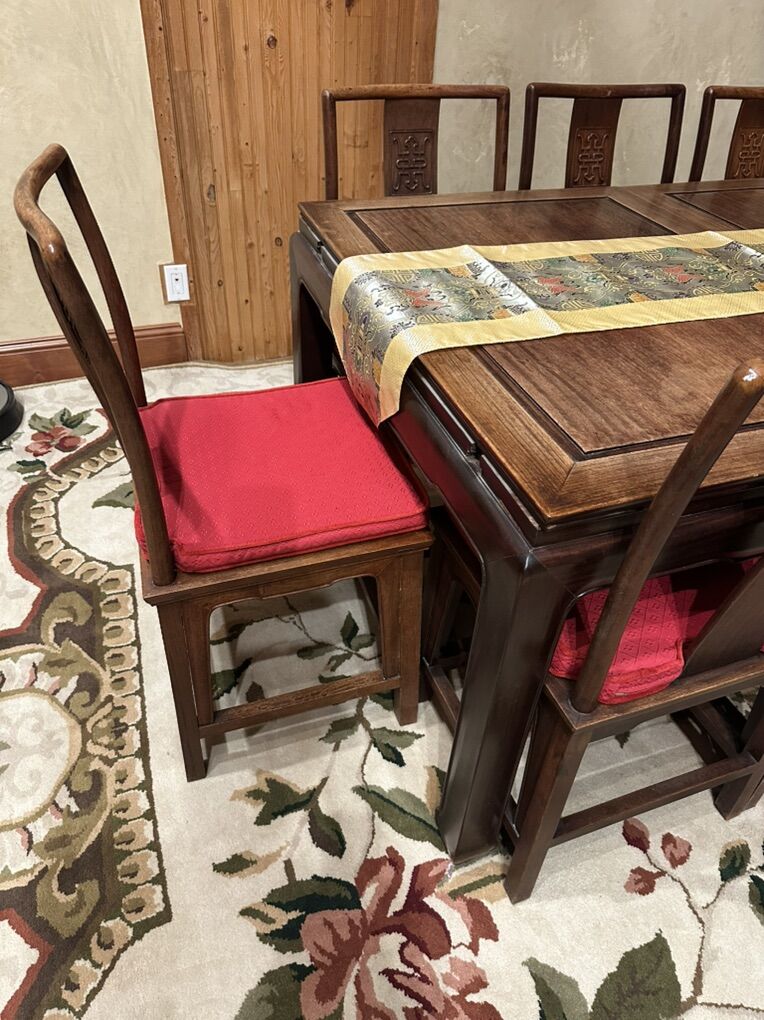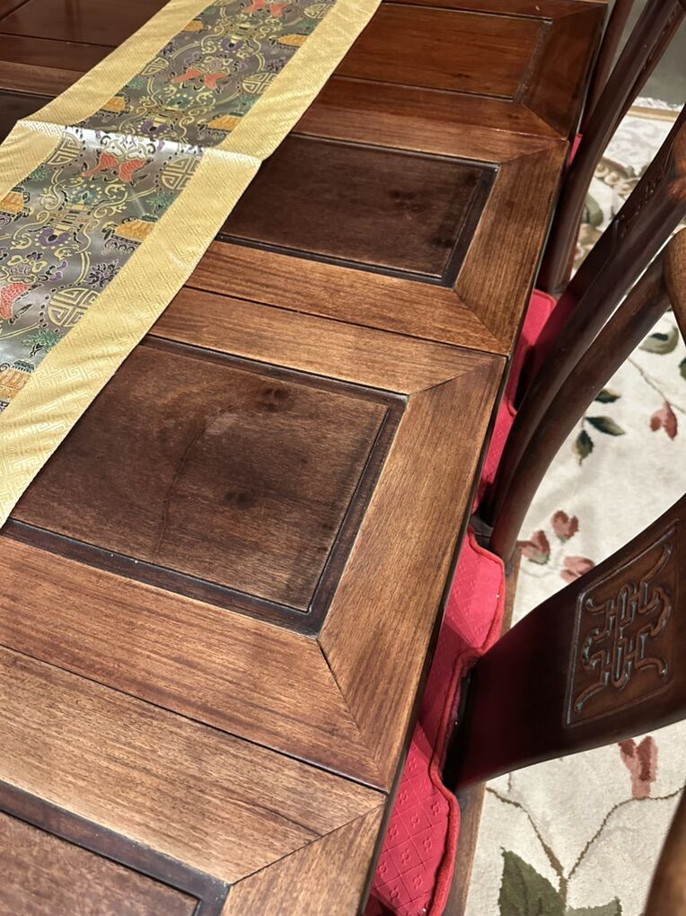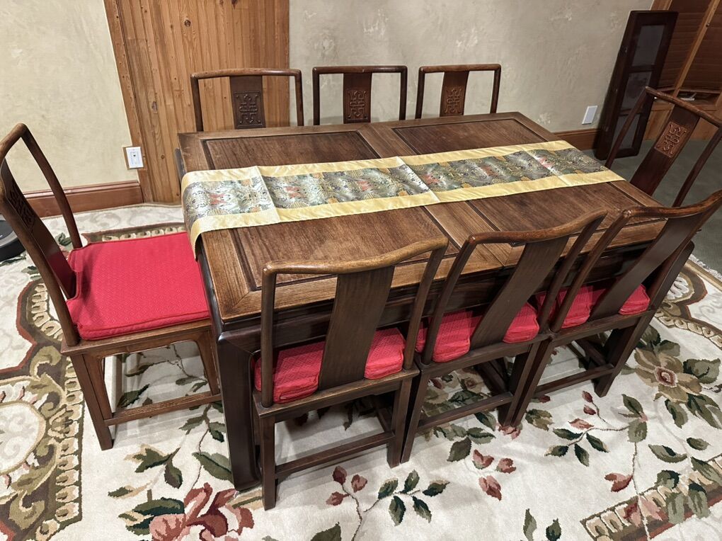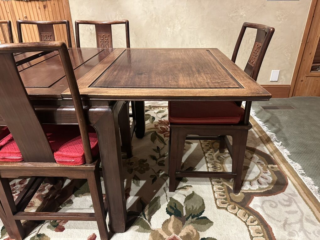 VenmoOriginal oriental antique dining room table with 8 chairs. Purchased at Anthony’s Antiques. 3 leafs will expand the table from 5 feet to just under 9 feet.