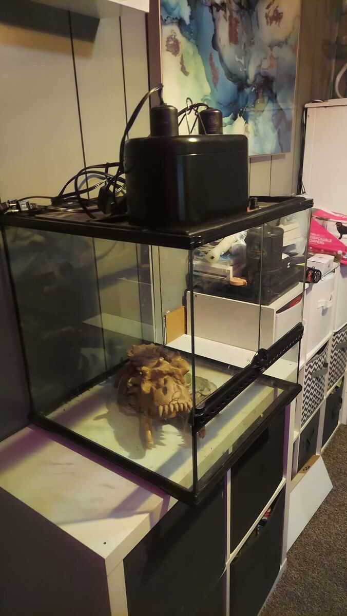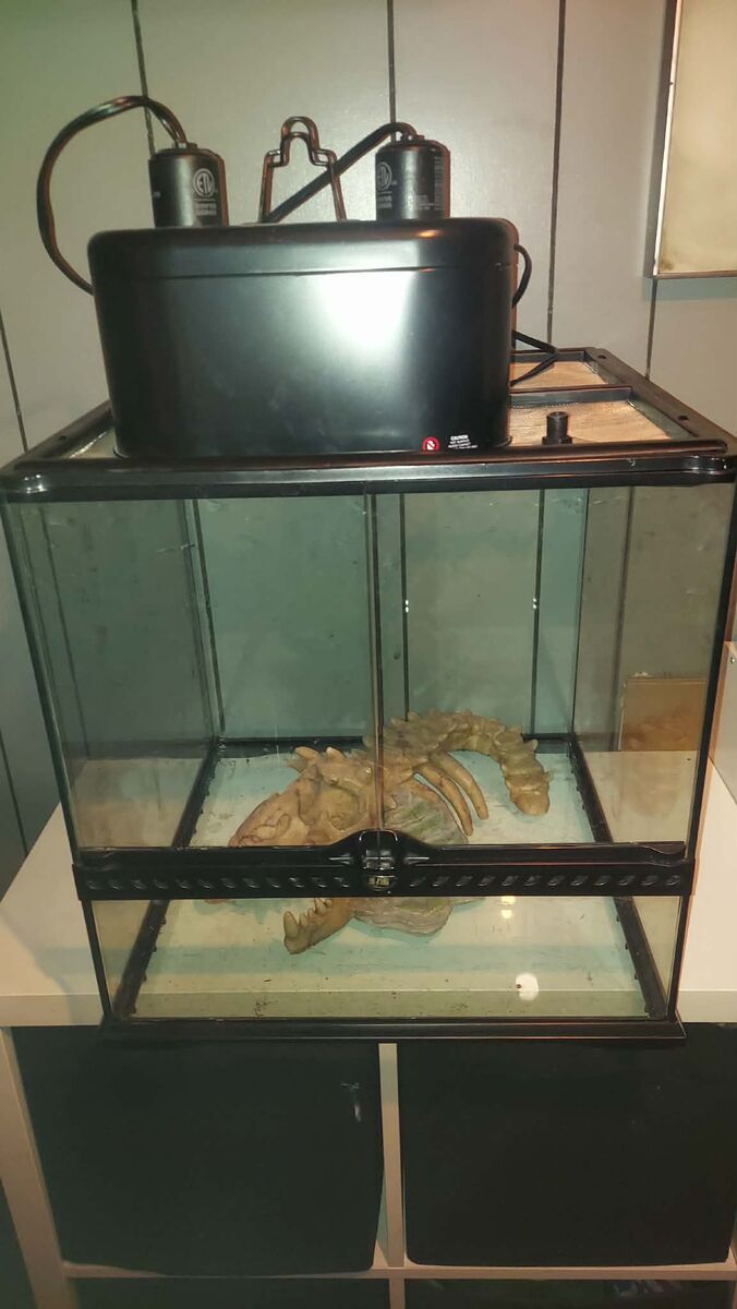 Perfect for small aboreal species like geckos, frogs, or even tarantulas! Comes with a dinosaur bones hide/cave and a double light fixture.