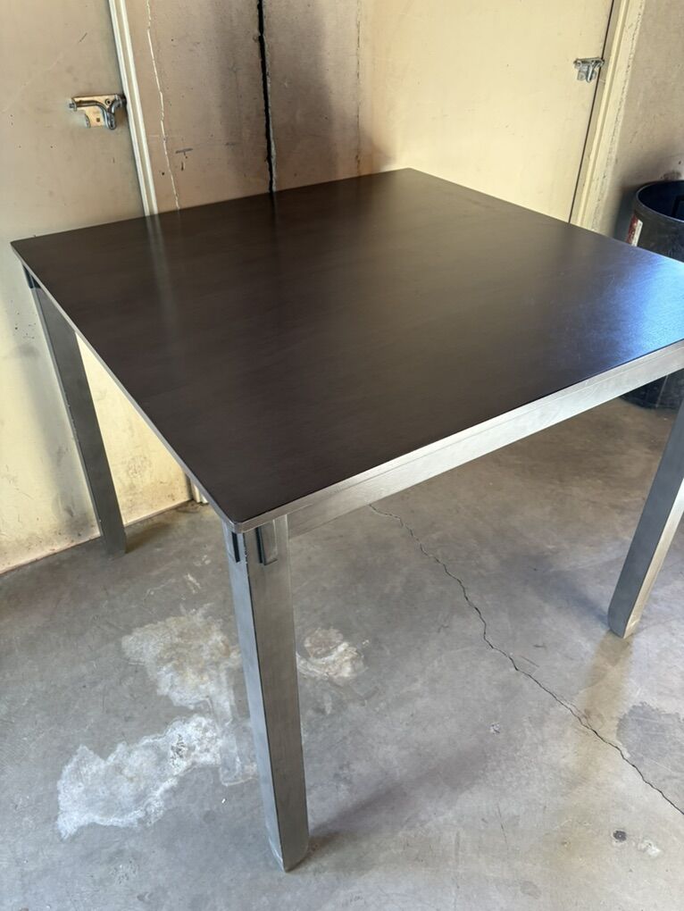 VenmoSturdy square table with dark-brown top and silver metal legs. Perfect for small dining setups, office use, or craft spaces.