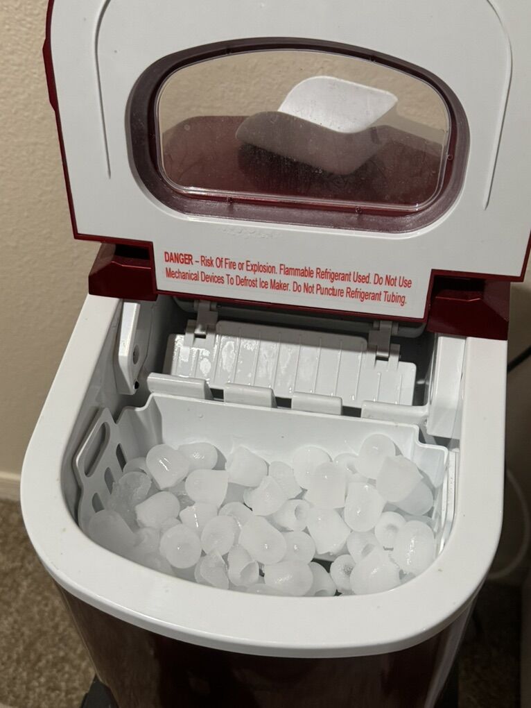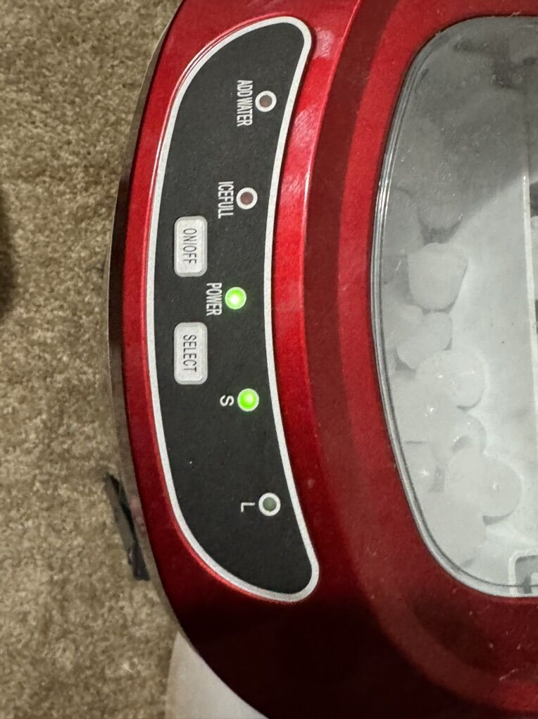 ApplePayIce maker - Red Up to 27lbs per day 2 cube sizes $100 asking Regular price new $189.99 Condition - used like new Message or text if interested.