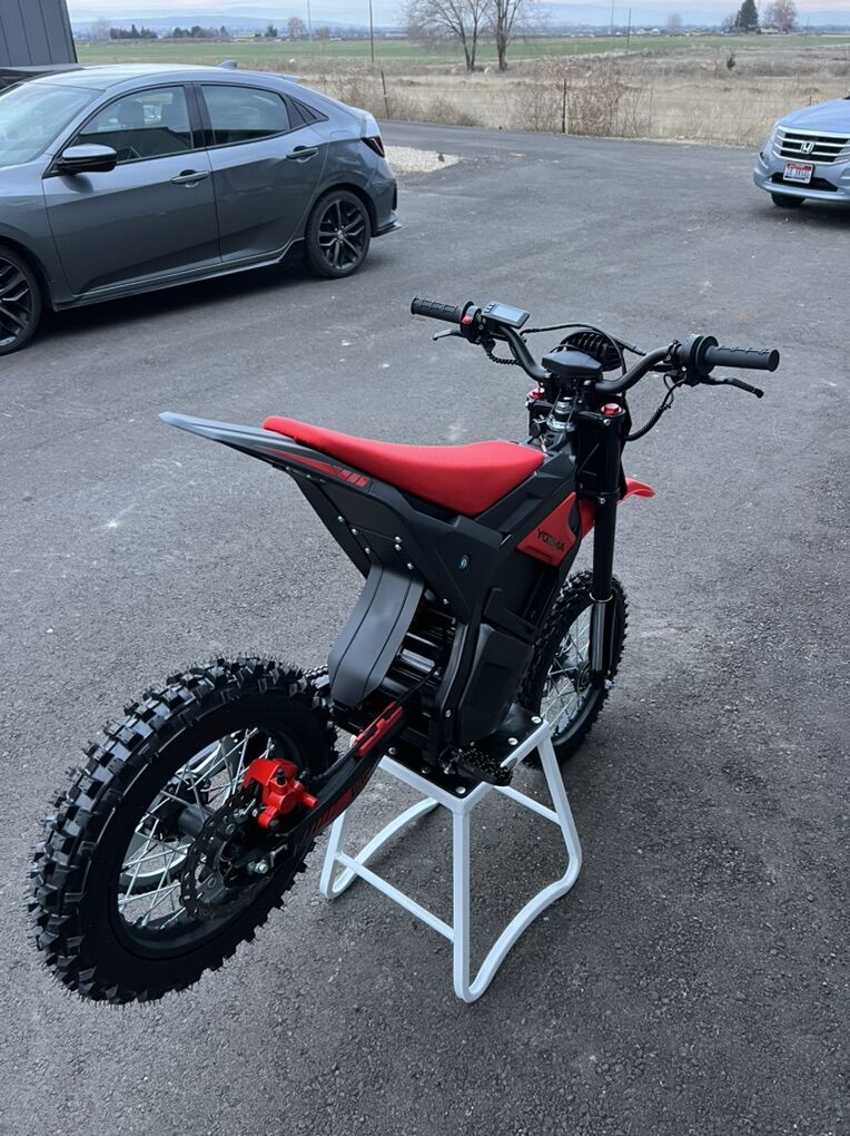 This is yours man Electric dirt bike is a blast great for early teen up to adult will handle up to 260 pounds of rider weight. Has a range of 50 miles speed up to 45 miles an hour with three different power modes, an absolute blast to ride.