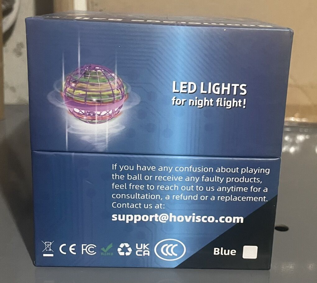 VenmoBoomerage Ball, which is a type of hand-controlled flying orb mini-drone toy. It features RGB LED lights that create a colorful display when flying. The toy has a boomerang function, meaning it is designed to return to the user's hand after being thrown. It is made from soft, durable material and stops automatically when it hits an obstacle, making it safe for indoor use. The device is controlled by hand gestures and does not require a remote control. It is recommended for ages 6+.