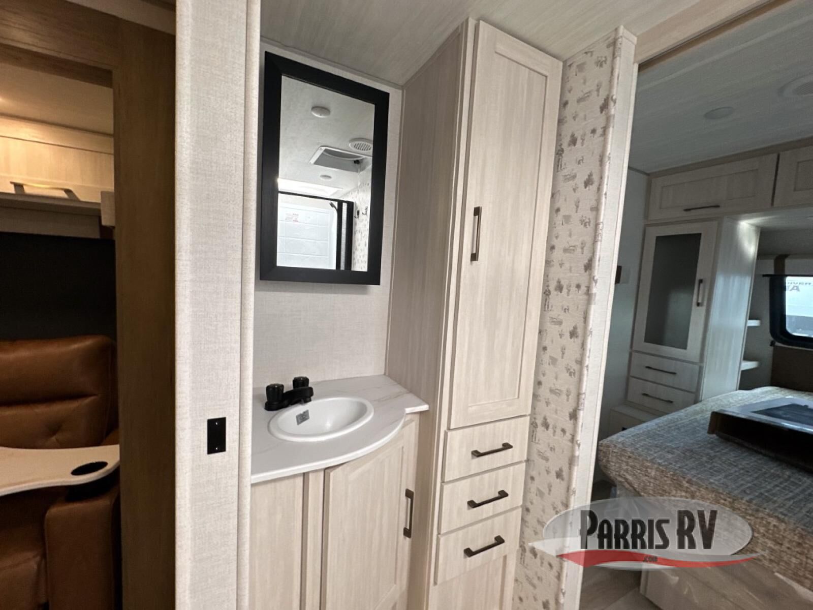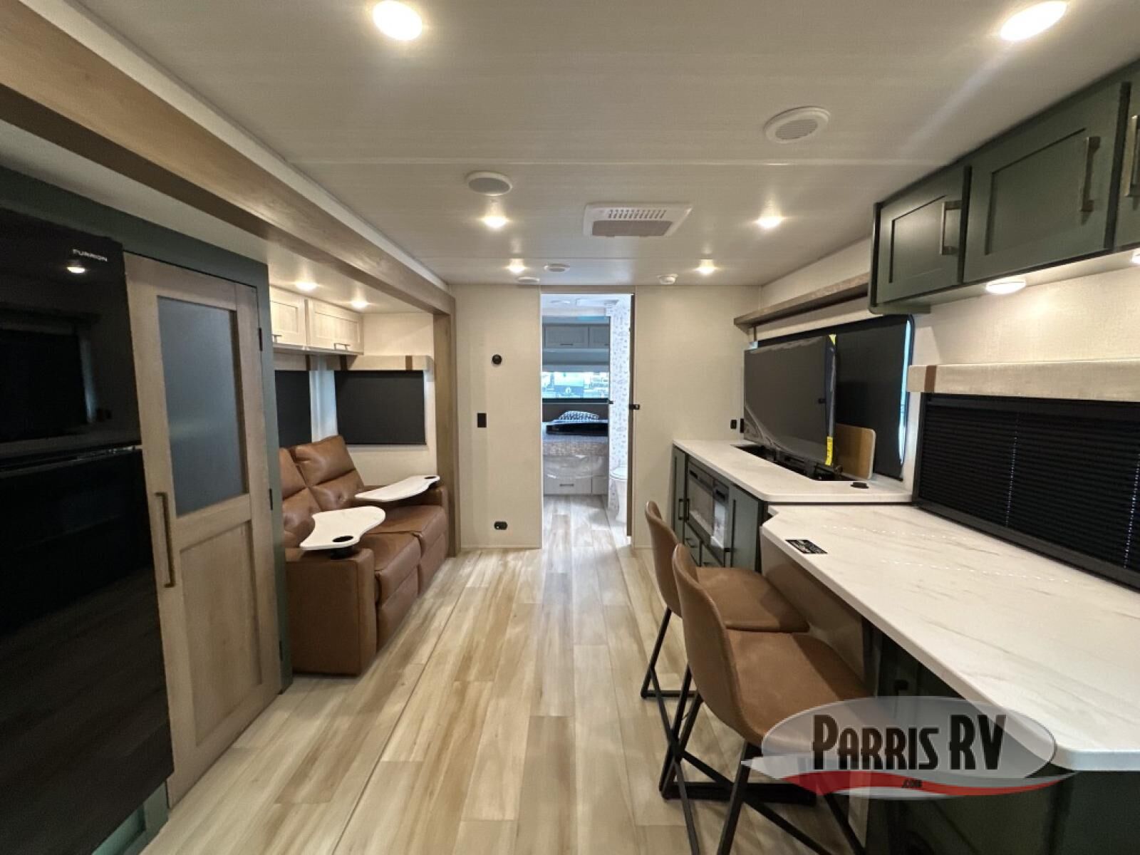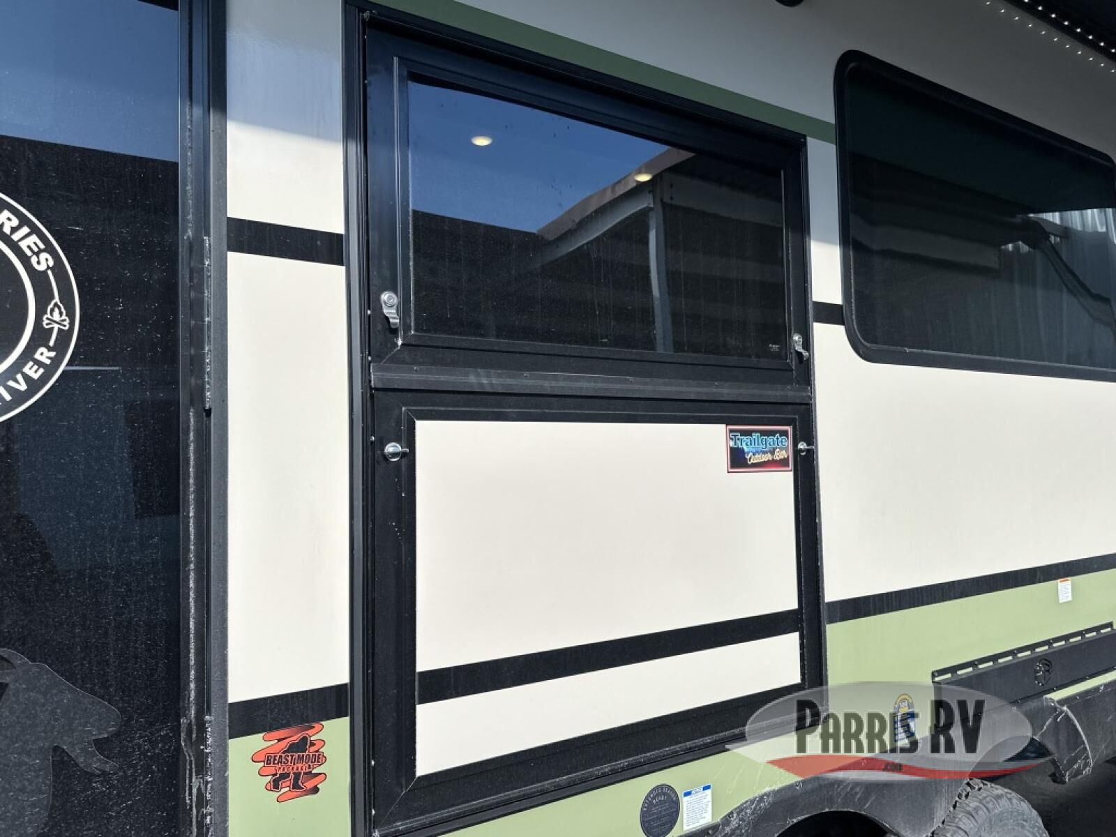 Make each camping trip one to remember in this dual entry, rear kitchen travel trailer! If you enter in through the front master bedroom, you'll find a queen bed and dual wardrobes for your things, plus a private entrance into the walk-thru bath. This will lead you to the main living area that is made spacious thanks to the large slide out. There is theater seating here, along with a refrigerator, pantry, and hutch with a shelf so everything has its place. Once the chef of your group has made dinner in the rear kitchen, you can dine at the Bar 2 Table pull-out dinette, which is conveniently located in front of the flip-up window. Just outside this window, you'll find the Trailgate outdoor bar, giving you a food truck atmosphere where you can visit with those sitting at the dinette table inside. When the optional Beast Mode Package on this model is chosen, you'll enjoy a 400-watt solar package, a fresh water filter, a Maxxair roof vent cover, plus a Beast Mode independent suspension for better handling.