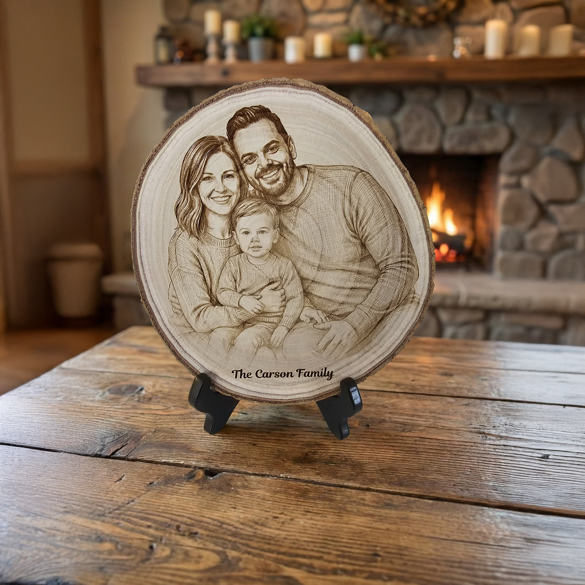 Handcrafted Natural Wood Slice Portrait - A Timeless Family Keepsake