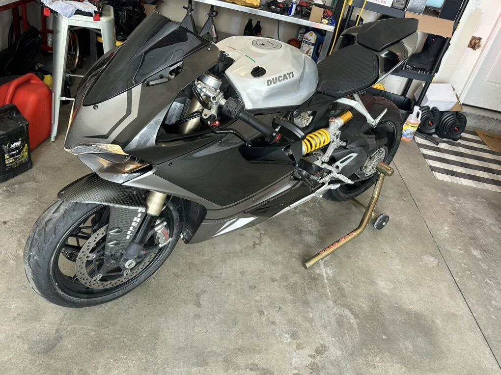 CashApp2012 Ducati Panigale 1199 base with ABS and quick shifter. 26k miles. Current on Ducati desmo service, next is due at 30k miles. Fresh oil and coolant. New aftermarket plastics. Comfortable ducati race seat added. Looks like it had been low sided a time or two, as can be seen on the left side frame slider. For the asking price, I’ll include the pit bull stand, the full carbon fiber set of fairings it came with, new chain and both sprockets and a few other odds and ends. Only trades considered are Powersports items: newer skidoo snowmobiles, side by sides, 300 EFI dirt bike…let me know. FCFS in Rexburg