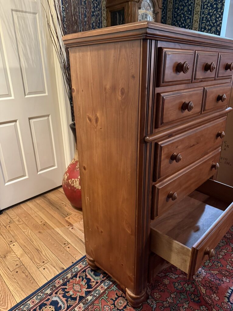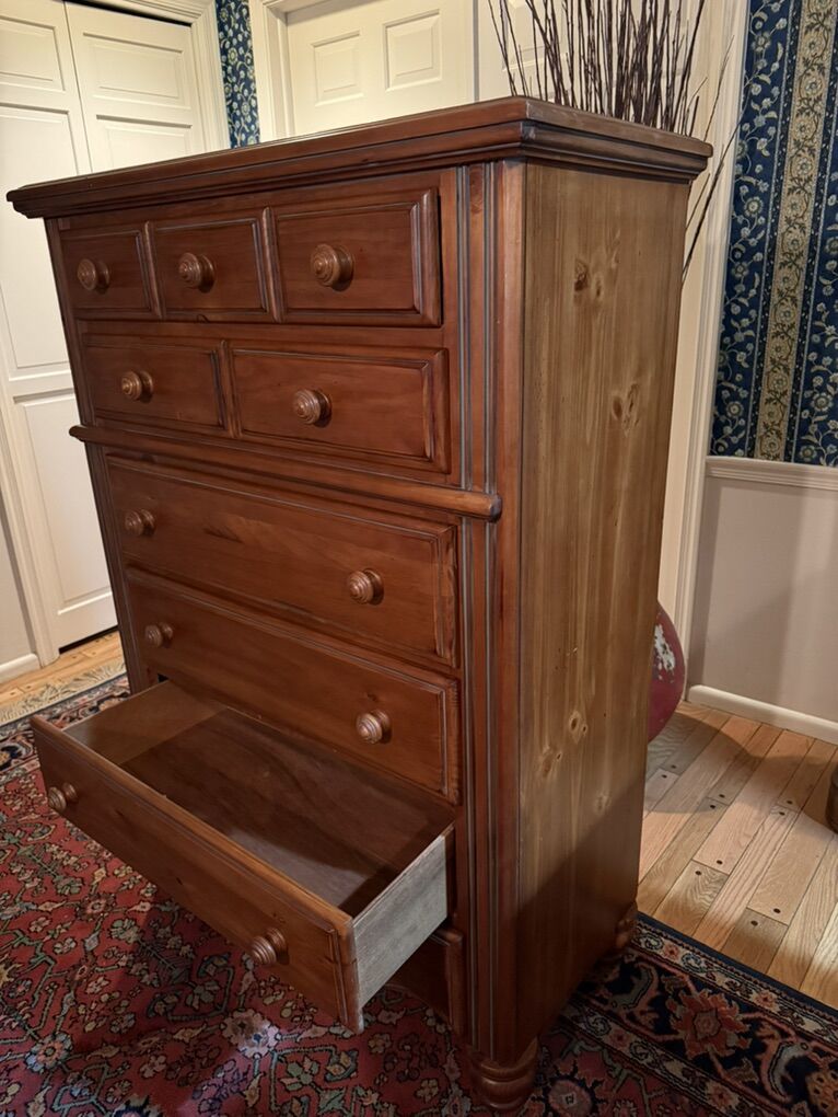 VenmoSolid-wood (not cheap laminate or wood composites) chest of drawers with bun feet. Expensive, quality-made, one-of-a-kind dresser with smooth-sliding drawers. From pet-free and smoke-free home.