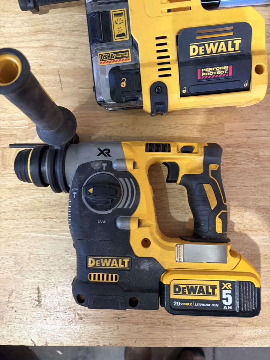 PayPalThis is a lightly used DeWalt 20V XR DCF273 rotary hammer drill kit with charger, 5 AH battery, and I will include a DeWalt tool bag for transport. It has a 1 inch SDS plus bit capacity. The tool is made in Czech Republic and is high quality. It has rotary hammer, hammer, and drill modes. Dust extractor can be removed.