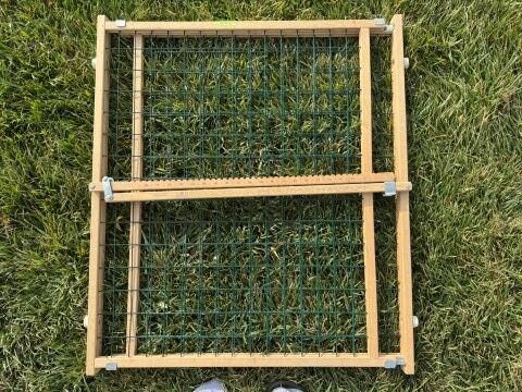 Versatile safety gate for pets or children. Features a durable wood frame and green wire mesh. Adjusts from 30" to a generous 50" wide and stands 31" high.