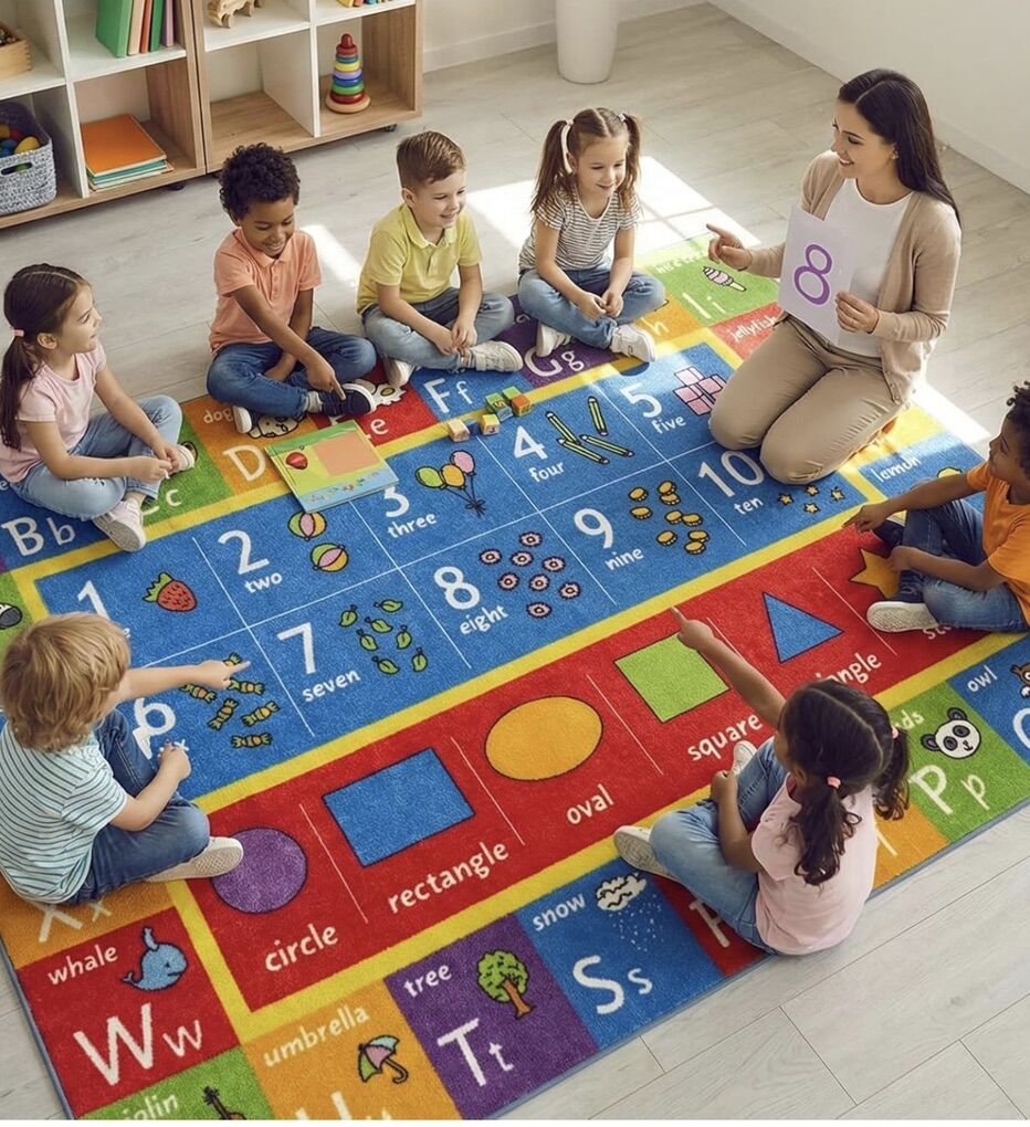 ApplePay8’x10’ Educational Rug: ABC Alphabet, Numbers & Shapes - Playmat - Interactive Play, Activity Area Classroom Rug Like New! Retails for $190 Pick up in Centerville PLAY, POINT & PRONOUCE: Teach letters, numbers, and shapes all in one fun rug. Features kid-friendly illustrations that promote early literacy, counting, and shape recognition in a hands-on way. ABC's come to life! TRANSFORM PLAY INTO LEARNING: Carefully designed to stimulate your child’s curiosity, creativity and enhance playtime! The vibrant colorful patterns and illustrations engage little ones in learning and make-believe play! EASY TO CLEAN DURABLE SURFACE: Low-pile surface resists shedding and stains, making it perfect for busy homes, classrooms, and daycare. Machine washable for hassle-free cleaning—just vacuum regularly or spot clean as needed. SOFT, SAFE, NON-SLIP: Quality nylon with a non-skid rubber backing and double stitched edging. Gentle on hands and knees. The comfortable mat surface provides a soft area for toddlers and kids to crawl, roll, dance, and play. USE ANYWHERE DESIGN: Designed to look attractive, making it easy to incorporate into the decor of your home, bedrooms, and play areas. Easy to store away or leave out as a permanent room accessory. Ignite creative play!
