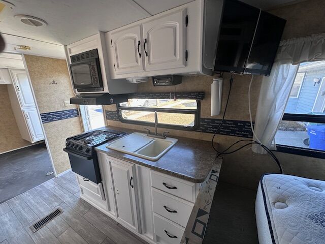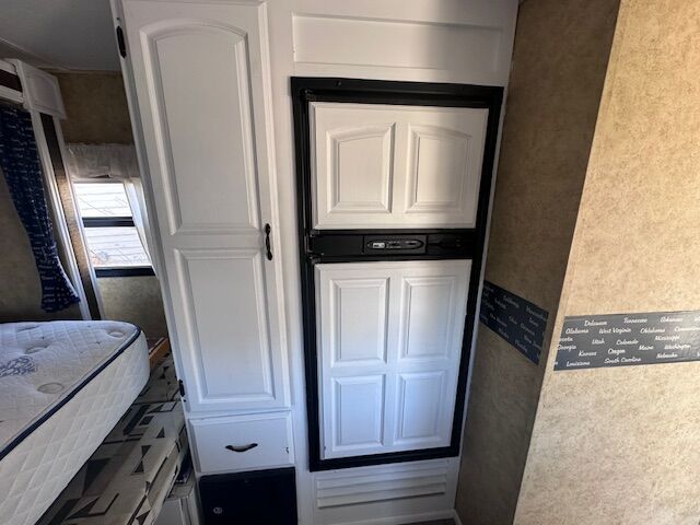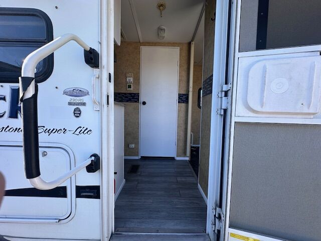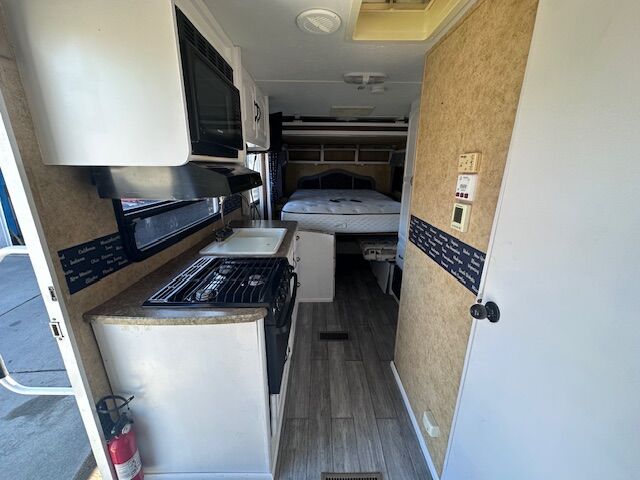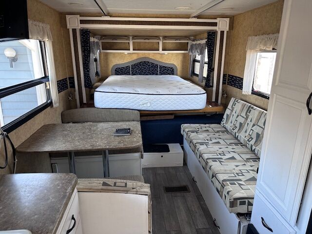 27' side load toyhauler with a great floor plan. Dry weight is is 5,280 lbs. Sleep capacity is 6 with the manufactured beds but can easily sleep 10 if utilizing the cargo space. Manual slide out for the master bed. The interior of the trailer is in good condition with stains on the upholstery (I have kids). The exterior of the trailer is in fair condition with the decals coming off. New tires and bearings greased begining of 2025. Will include one battery and propane tank. Trailer also comes with tire covers and window covers. A/C, heat and appliances all work. Awning will need to be replaced soon.