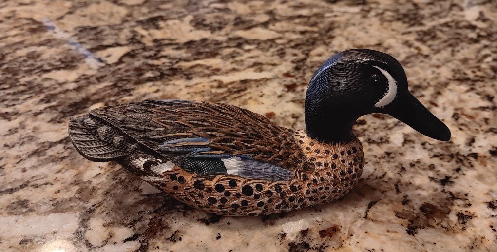VenmoMallard, Pintail, Blue Teal and a Canada goose clay, hand painted figurines. Take all 4 for $40 Mallard is 7 inches, pintail 5 inches and the Teal 4 1/2 inches front beak to tail "feathers".
