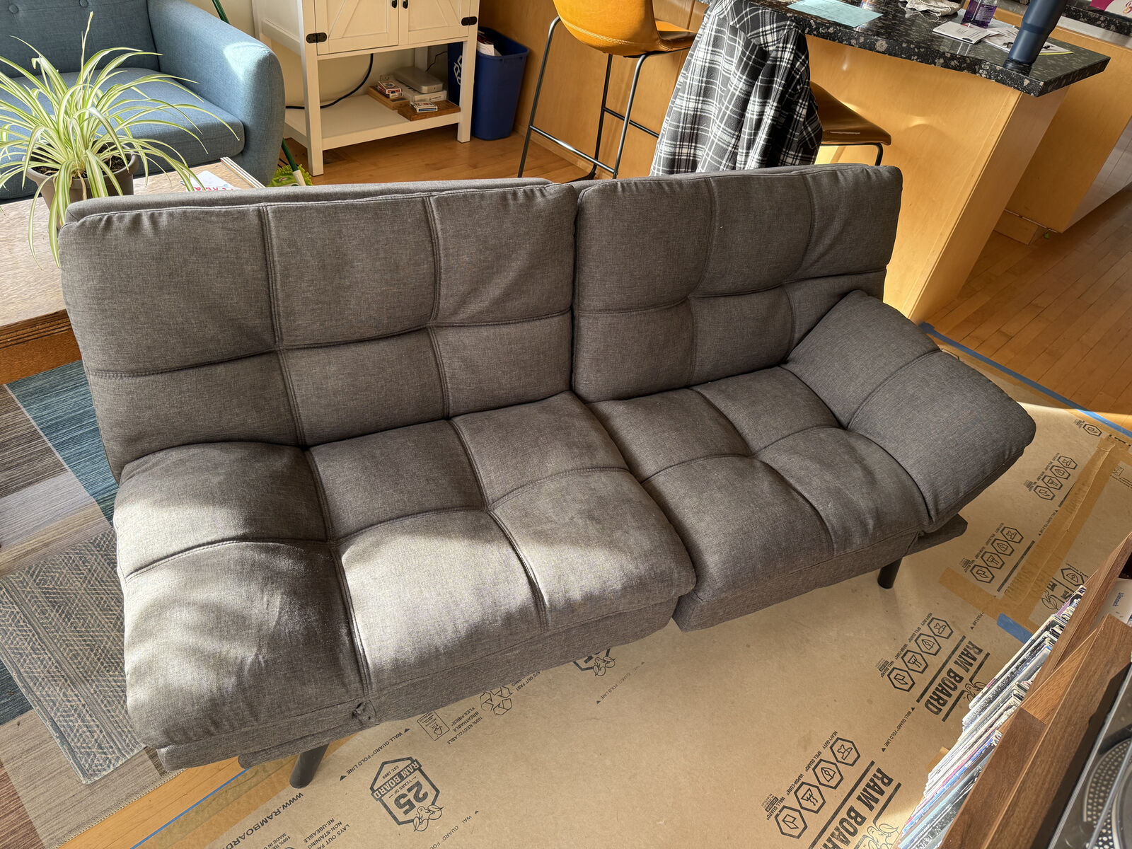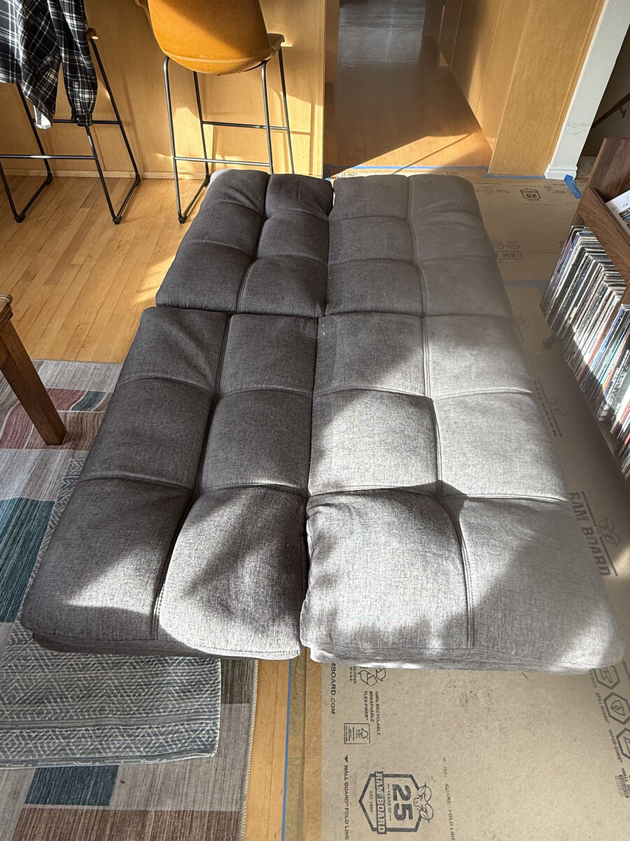 ZelleMulti-angle adjustable futon sofa/bed. The backrest and armrests are adjustable for different positioning -- for sitting or sleeping. Bought it two years ago for $300+/