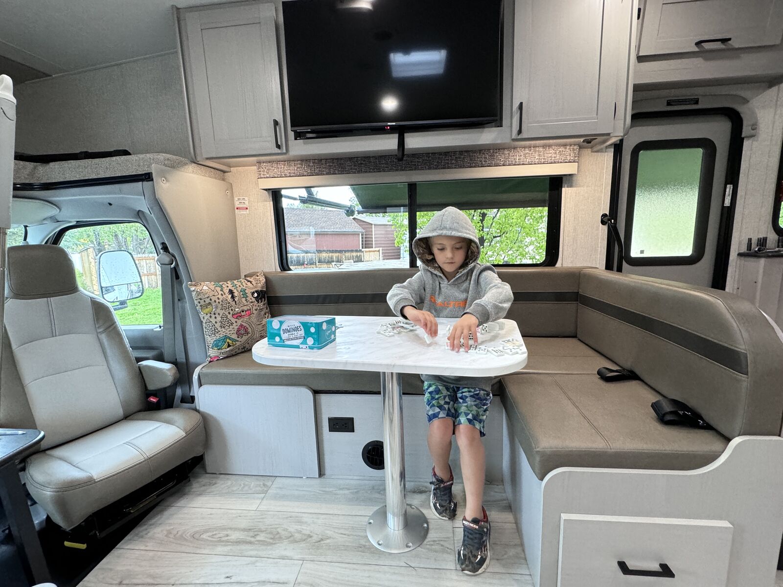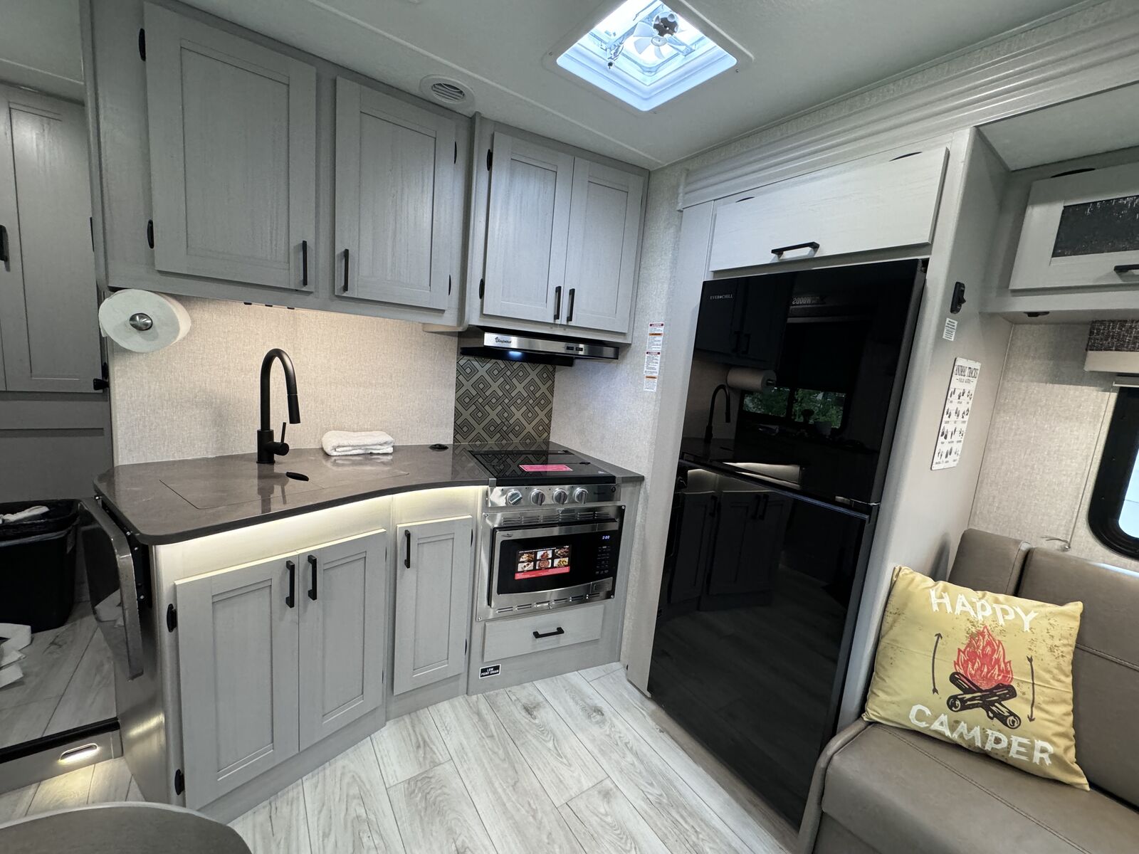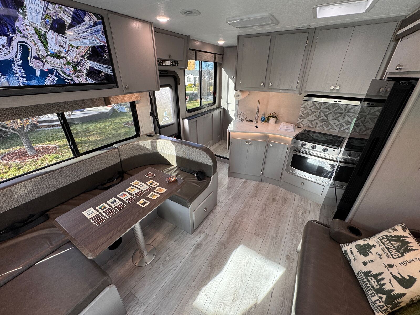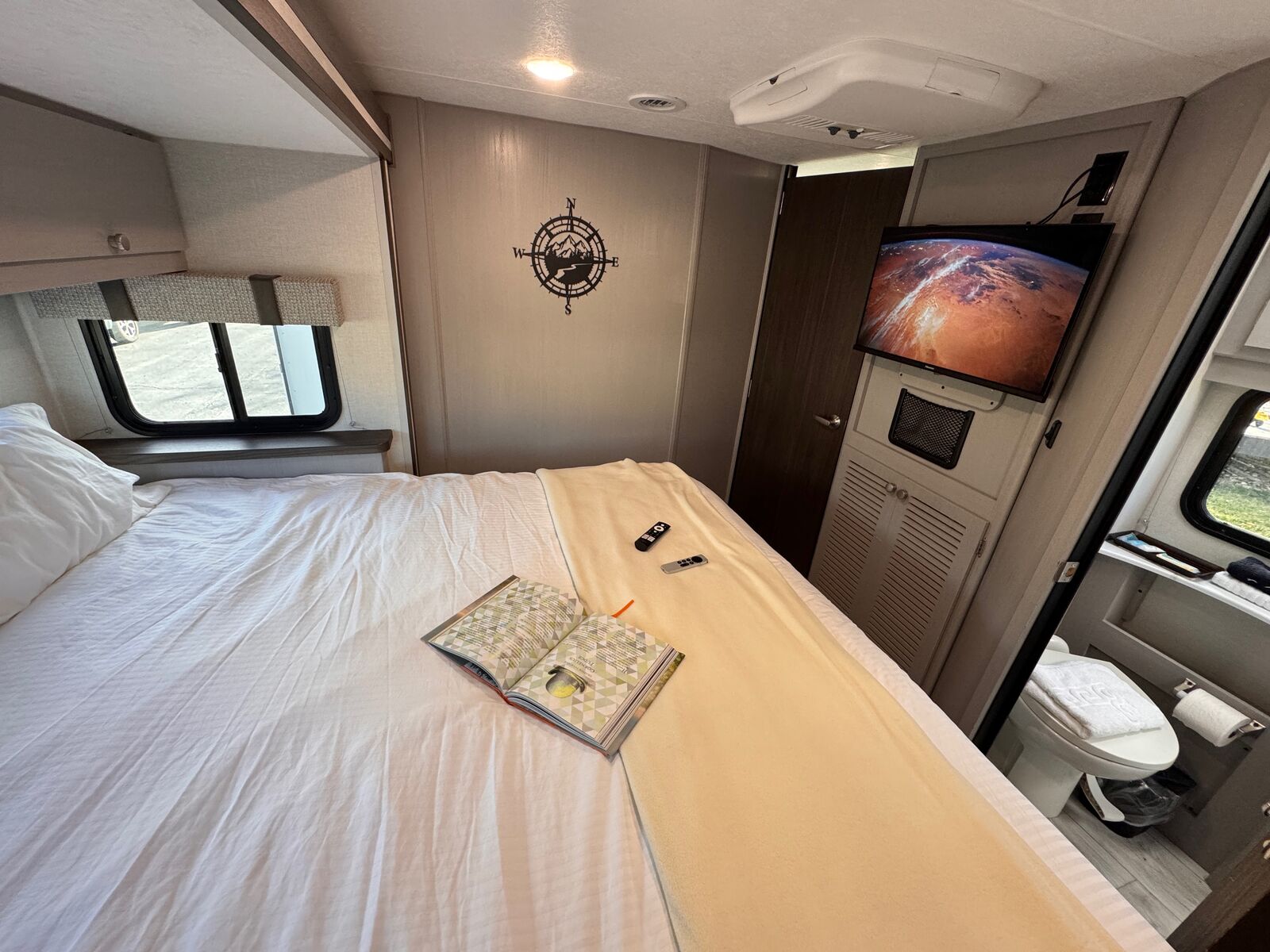 Cook up a storm in our fully-equipped kitchen, stocked with all the essentials for easy meal prep. Entertainment? Two flat-screen TVs, including one outside, with streaming services. Plus, swivel cab seats and a washer/dryer for added convenience.