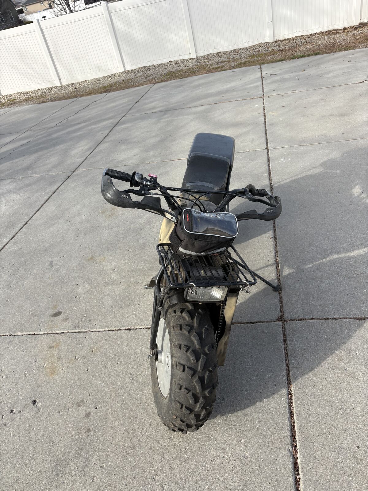 Runs great! Comes with: owners manual, new drive belt, spare used belt, new spark plug, chain repair kit, spare air filter, hand pump for wheels, hand pump for tires, and a set of snow chains. The wheels are hollow and meant to be filled with gas. The headlight doesn't work, and the front gearbox is slipping. It will need to be replaced, or rebuilt. A new one from Rokon costs $425. These are super simple to work on, and Rokon has great customer service! I will consider trading for a Yamaha TW200.