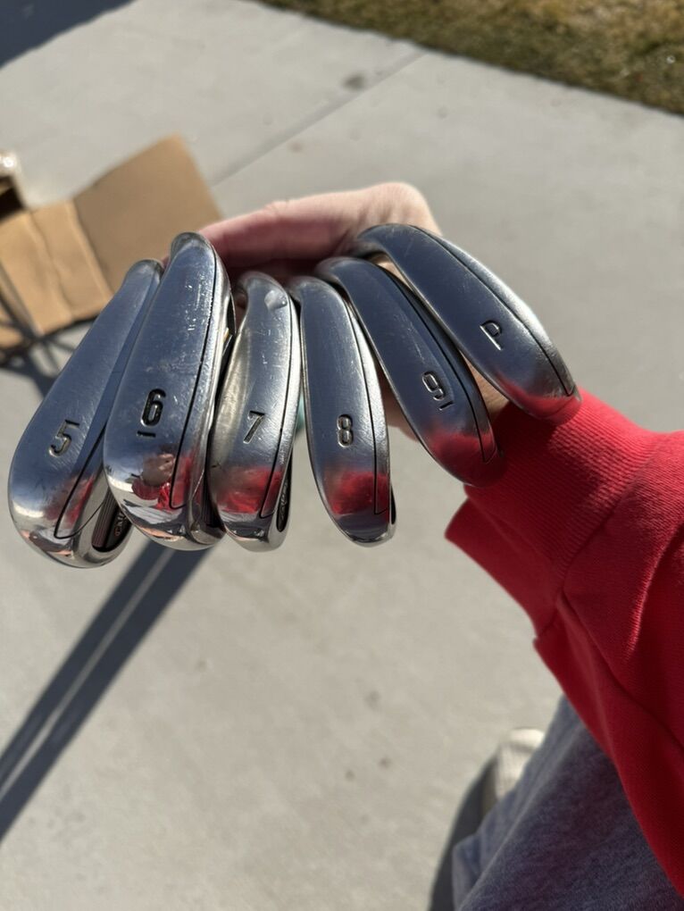 Iron set 5-PW with 3&4 hybrids Great set, really helped my game. I put new grips on maybe 5 rounds ago.