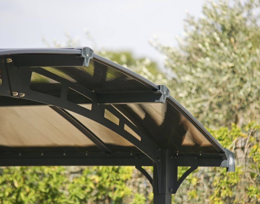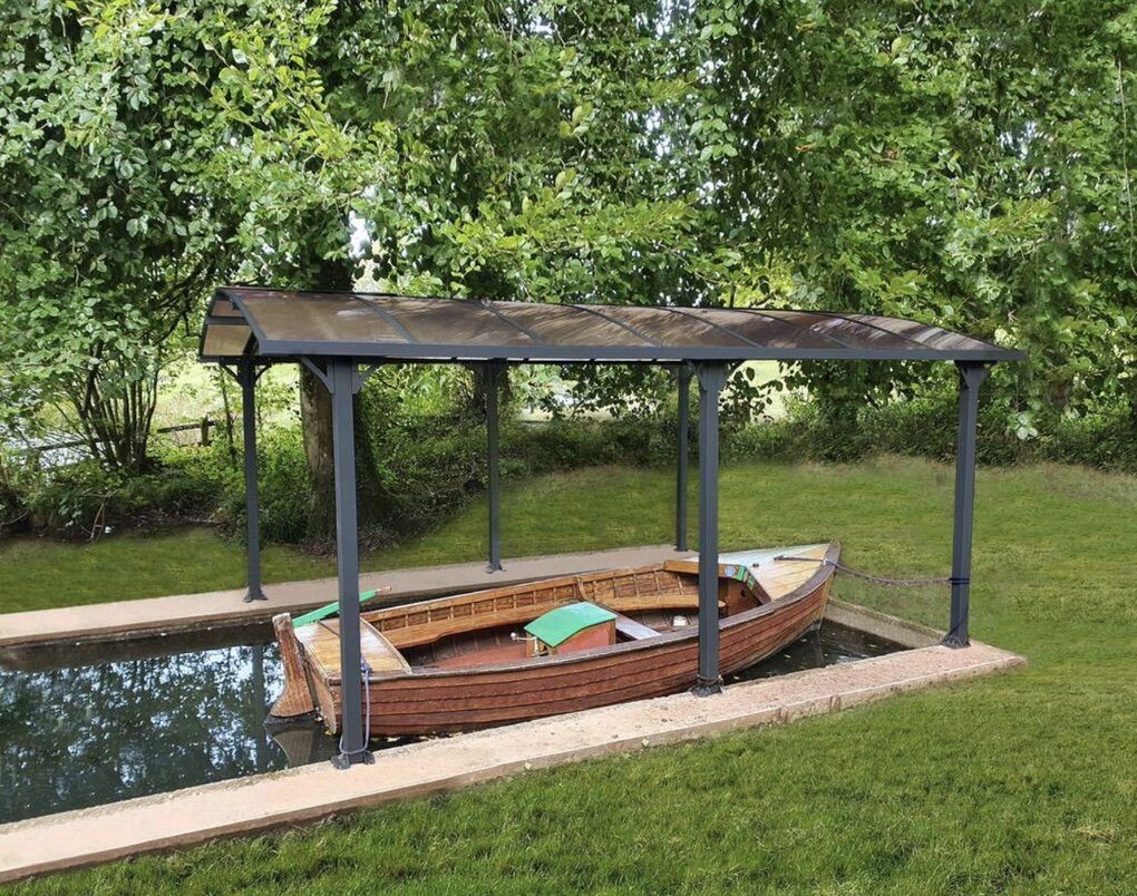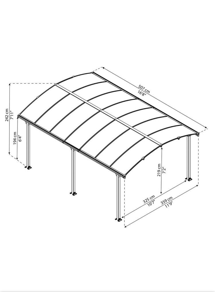 Very highly rated artistic-style single-car carport. Has curved translucent roof panels rated well for snow loads. Still new in box. We decided to build a garage instead so never installed or used. A beautiful high end look complimenting any architectural style home. Could also be used as a beautiful patio or hot tub cover in your yard.
