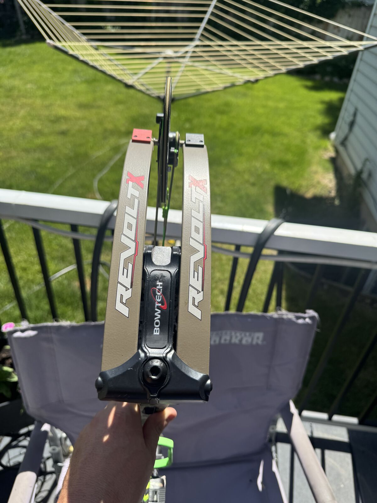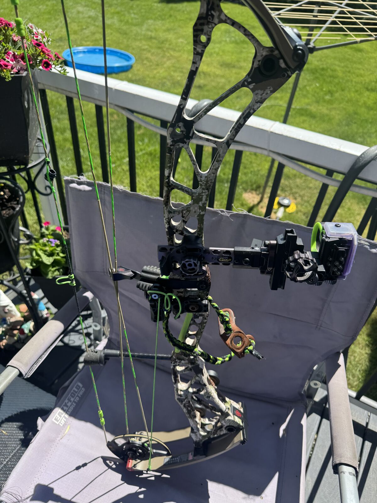 Bowtech revolt x. It has a vapor gen 7x, black gold pro 5pin, vapor trail strings, and tight spot 5 arrow Sitka quiver. Selling the package for 900$, but will sell individual pieces. please text me for questions.