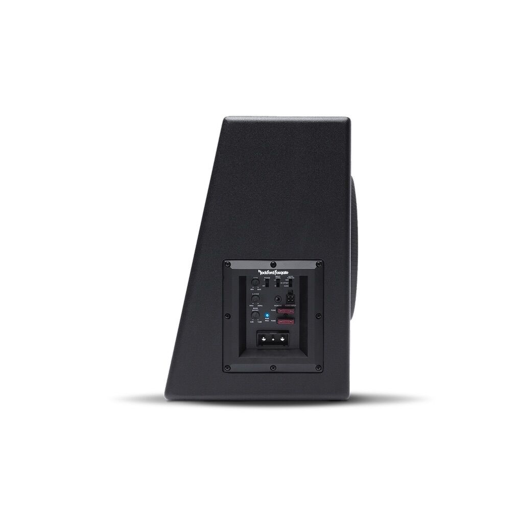 Key Features: • 300 W RMS Class-D built-in amplifier delivers punchy low end with high efficiency and low current draw — no separate amp needed.  • 10” proprietary Punch subwoofer in a sealed enclosure for tight, controlled bass.  • Remote bass level control included so you can adjust bass from the driver’s seat.  • High- and low-level inputs make it easy to connect to almost any head unit.  • Auto turn-on, thermal & voltage protection, rugged sealed box with durable heat-activated vinyl finish — built to last in your trunk or cargo area.