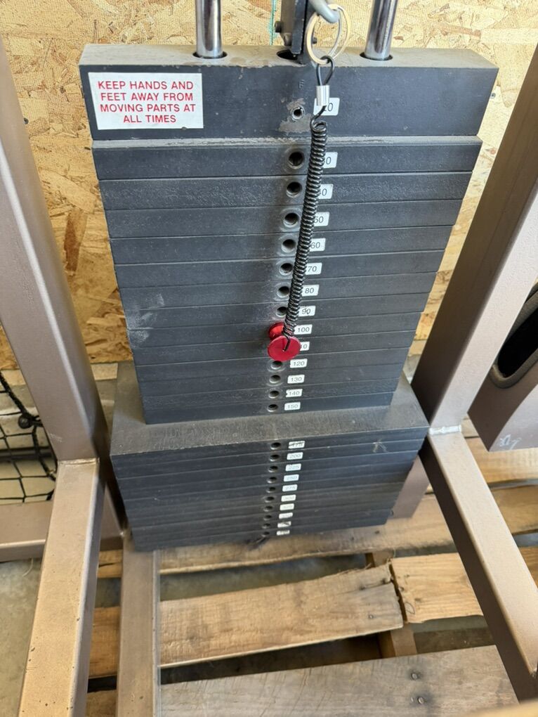 VenmoBody Master Leg Press, has a 400 pound weight stack. Everything works great.