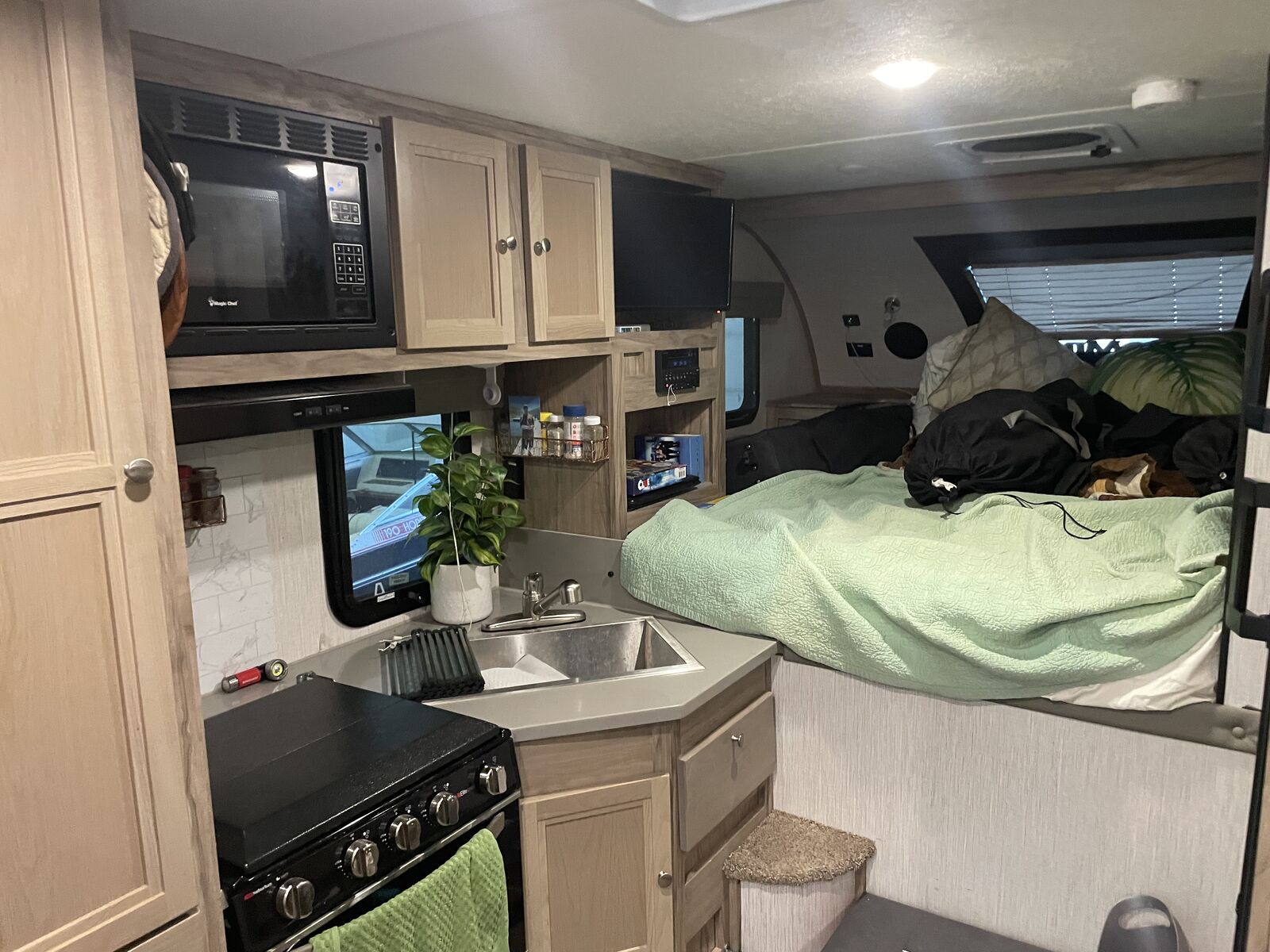 2021 palomino with slide out. Bath, toilet, oven, full size queen bed. 45 gallon fresh water. Very good condition. 2 canopies. Large fridge. Will fit 6-1/2' bed.