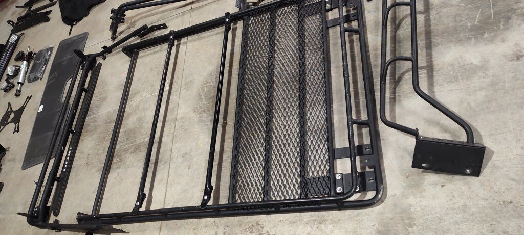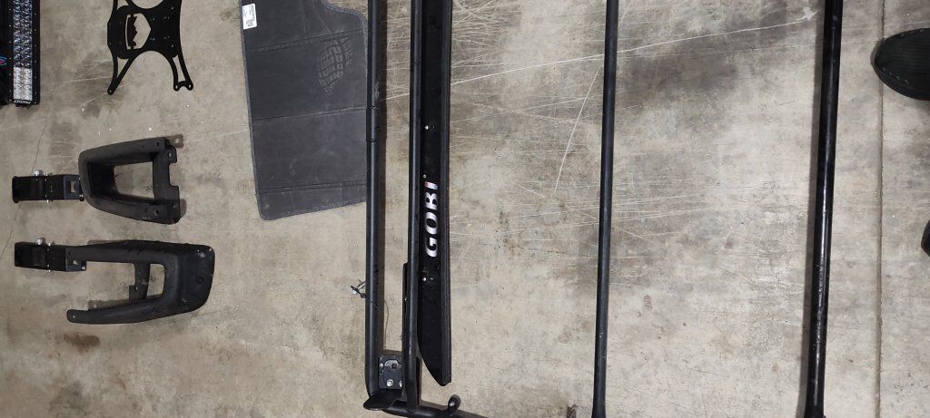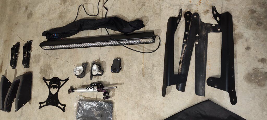 2015 jeep jku Wrangler accessories, factory soft top, spider shade, rain cover, 50" rigid light bar, arb compressor under seat mount, bumper extension, cargo net, factory fog lights, brake controller, Gobi rack with ladders, light bar deflector and two cross bars, fox steering stabilizer, two door steps, front license plate holder.make me an offer on anything you see. thanks