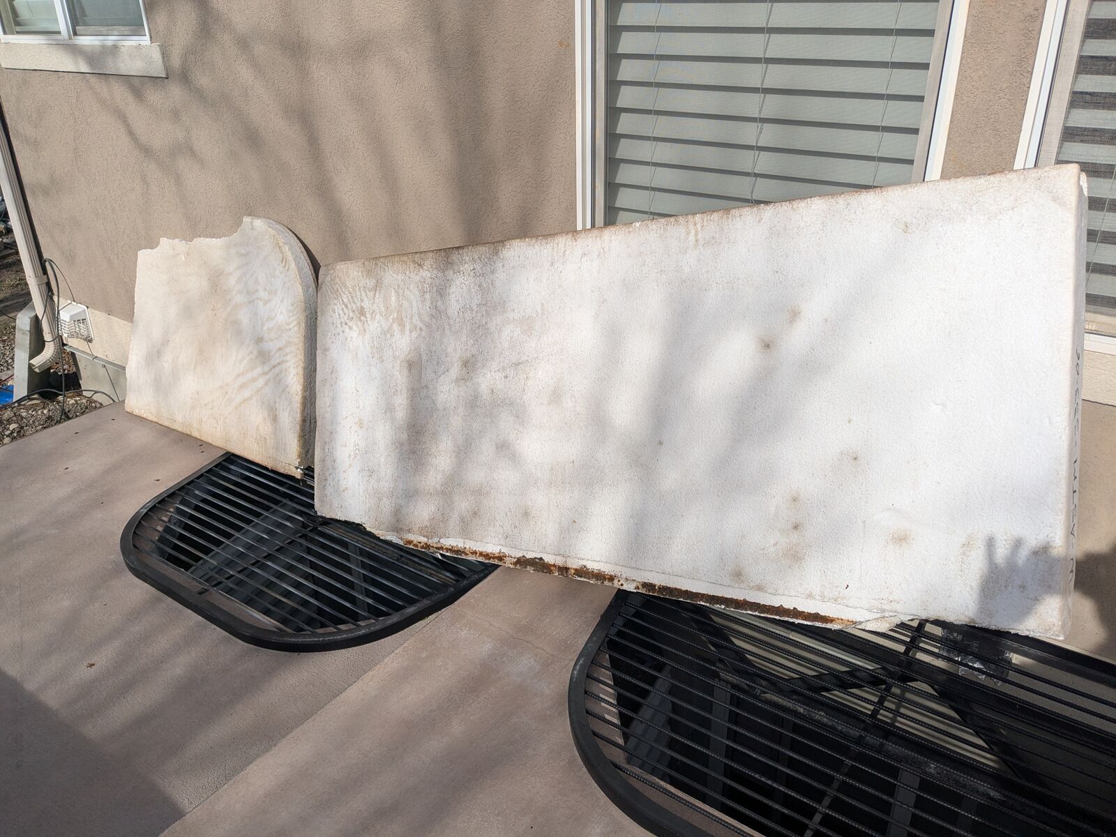 Selling four large rigid EPS foam panels removed from a spa cover. Dimensions: 3 ft × 7.5 ft, 3–4 inches thick, tapered. These are high‑quality, dense foam cores—much sturdier than typical packing foam.
