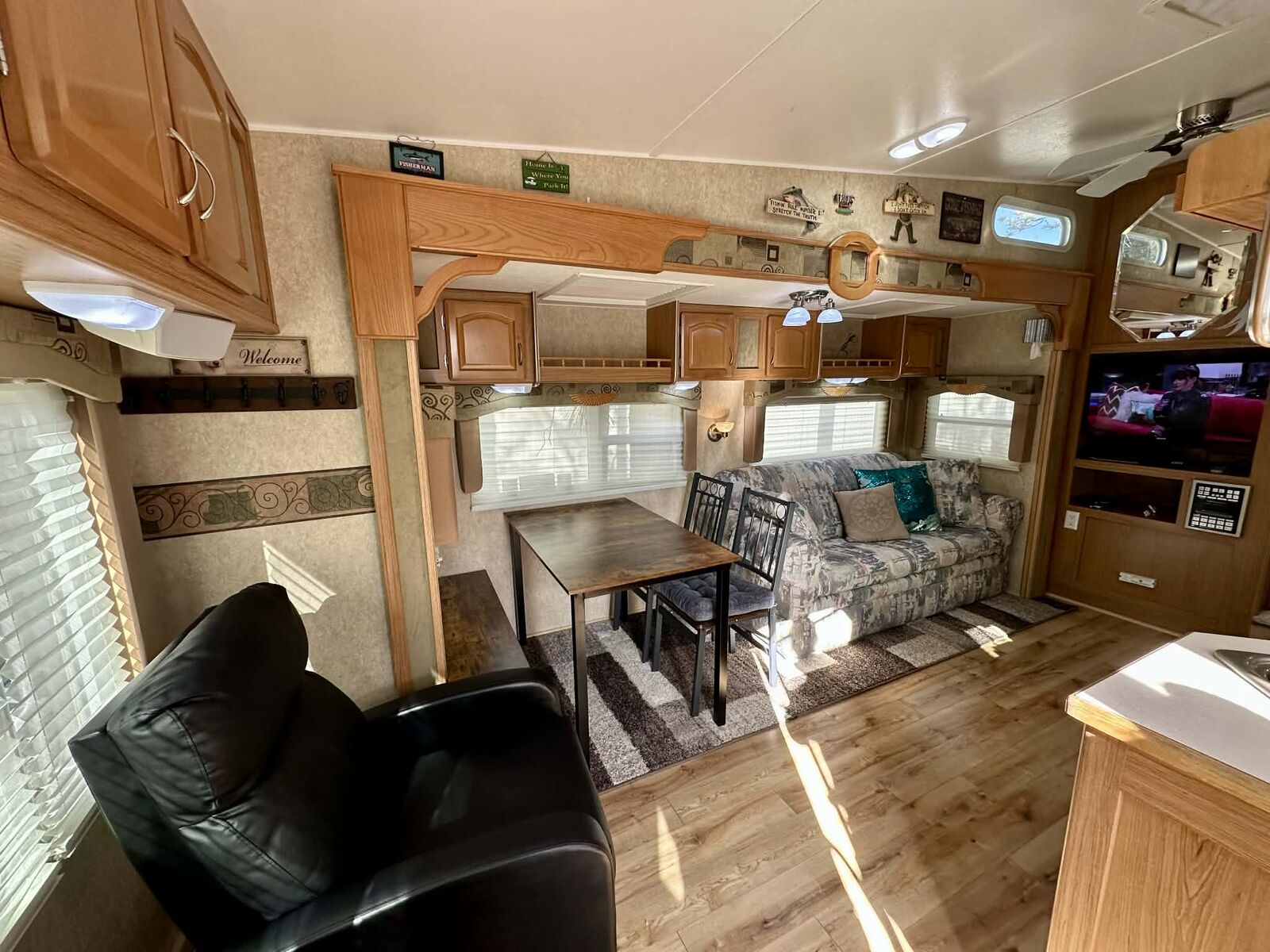 Venmo2008 Wildcat fifth wheel in excellent condition, very clean inside and out, and ready for your next camping adventure! No water leaks, Everything works as it should. 2 slide-outs – very spacious layout, 2 queen-size beds, 2 TVs included, 2 reclining sofas, Large closet & plenty of storage compartments, Awning in good conditionWell-maintained and very well taken care of
