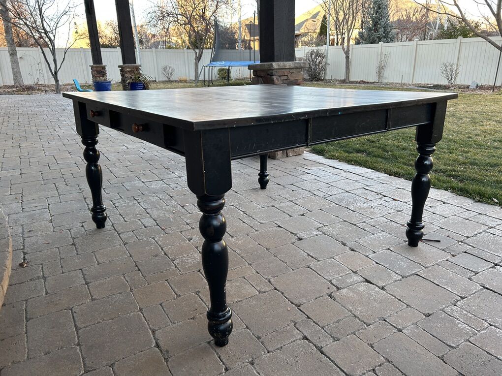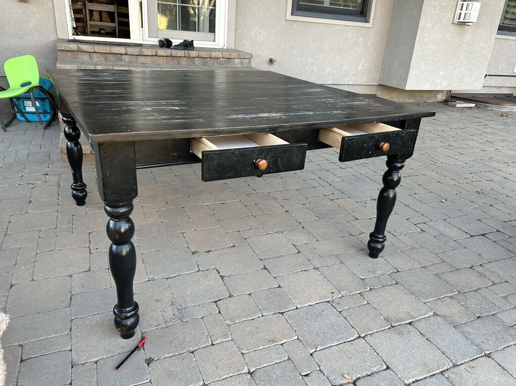 VenmoSolid wood table and chairs. Six chairs. Can easily be refinished or painted. Sturdy.