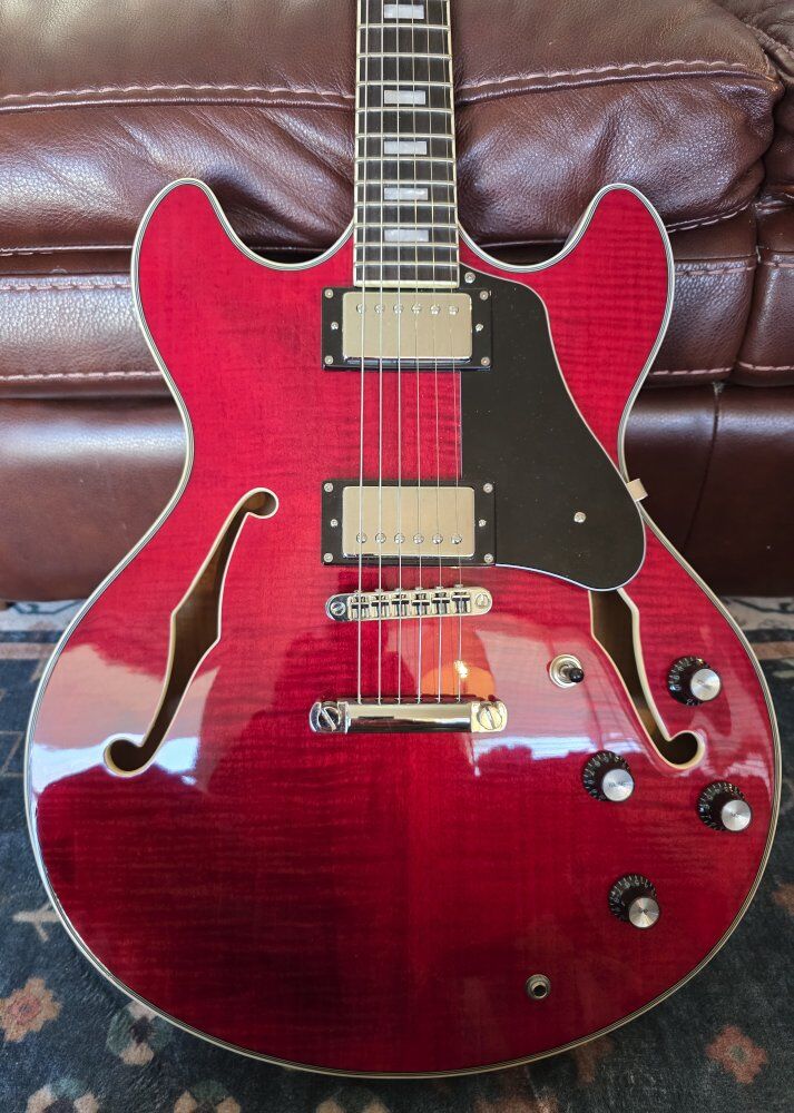 VenmoBeautiful see-through red maple, Larry Carlton Sire H7 ES-335 clone, mint condition. Humbucking pickups. The quality on the Sire H7 clones is amazing. Reviewers compare the H7 very favorably with the Gibson ES-335 they are copied from at a fraction of the price. Sweetwater currently lists these for $799.
