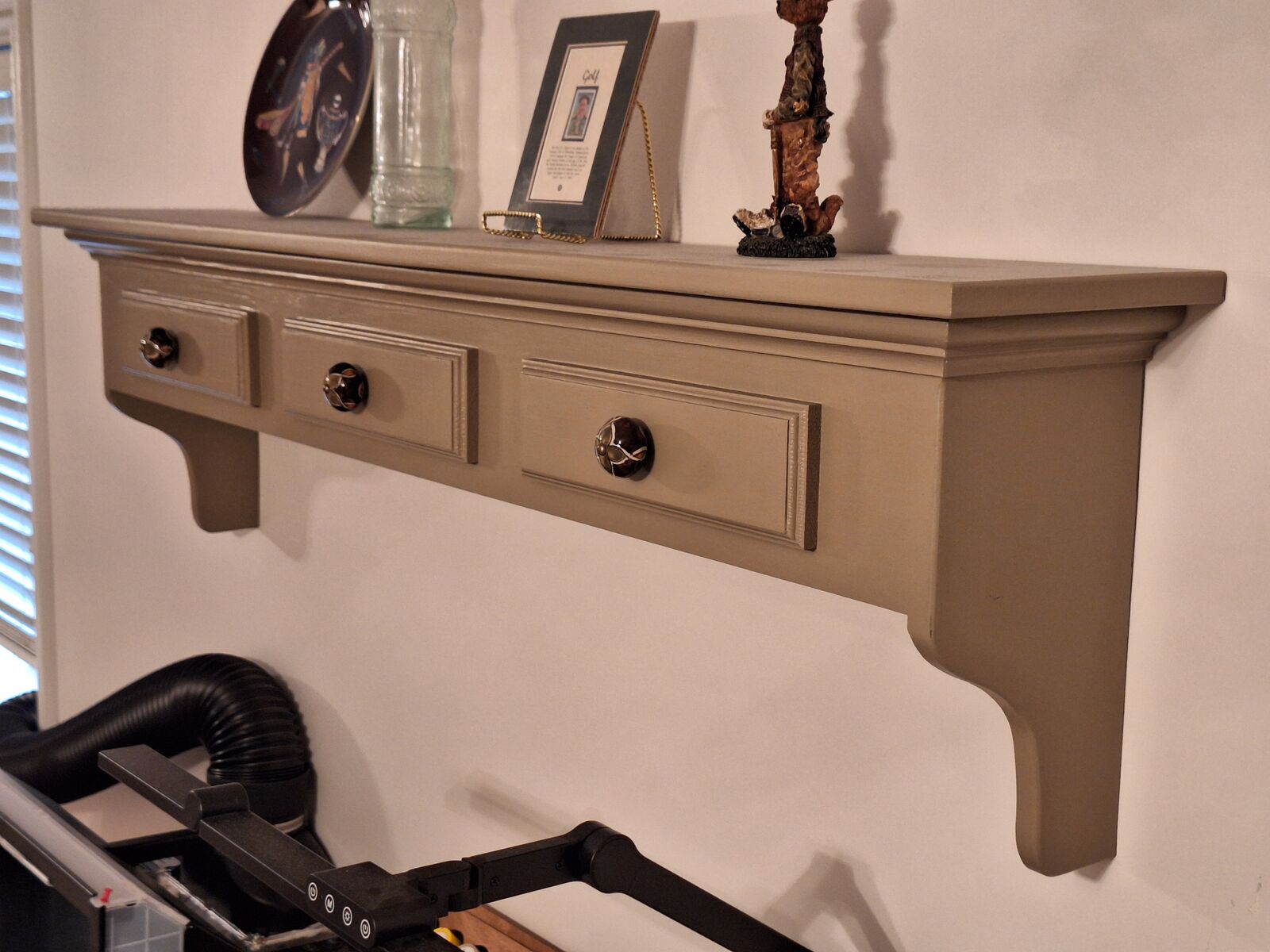 VenmoPerfect like new condition. Decorative Wall Shelf color is taupe and measures 53.5" long x 14.75" tall x 9" deep. Shelf surface is 53.5" long x 9" wide. Golf memorabilia not included.