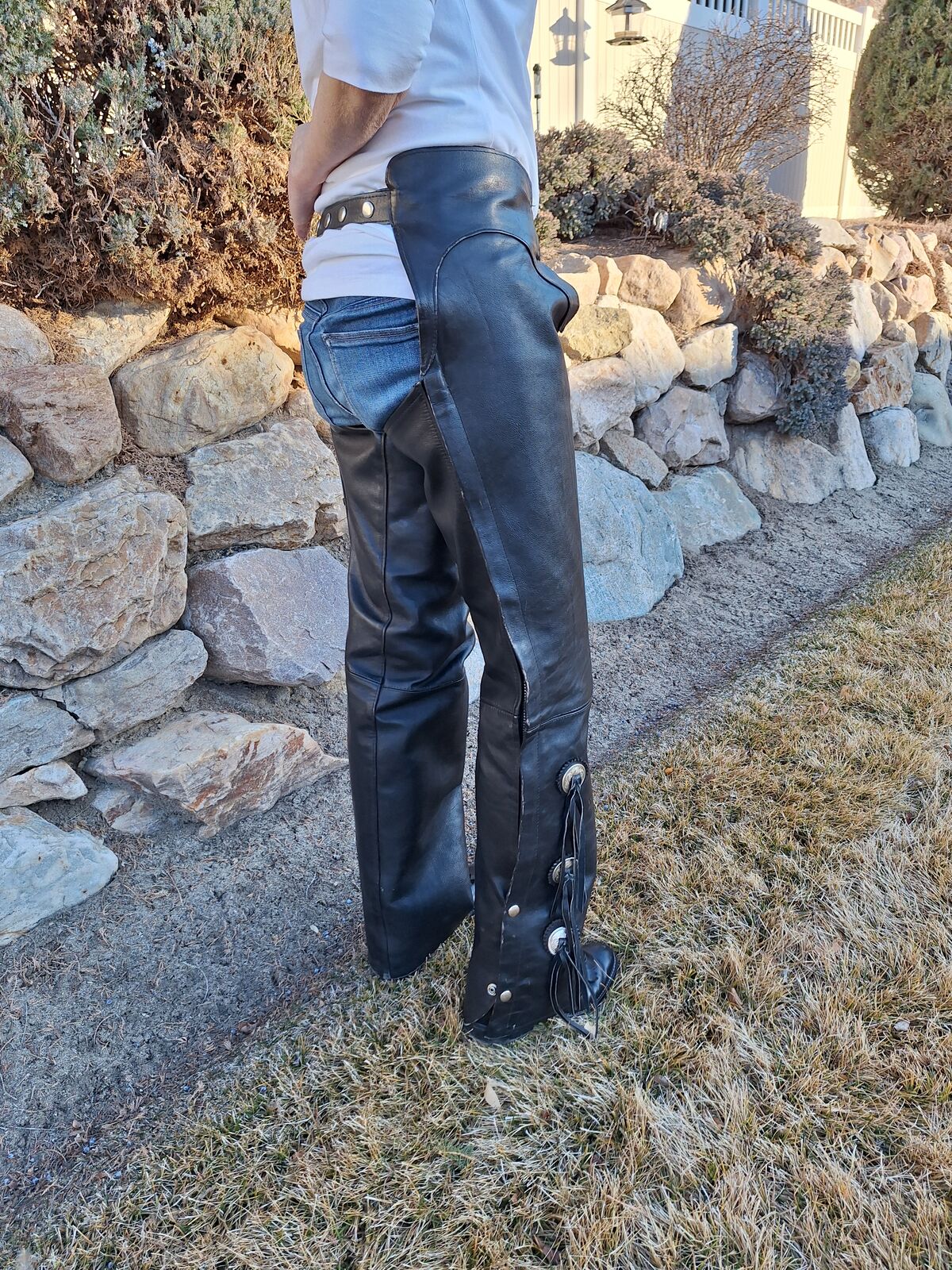 VenmoEach leg is zippered with 2 snaps at the bottom each leg and 3 decrotive conchos. Size small. Excellent like new condition.