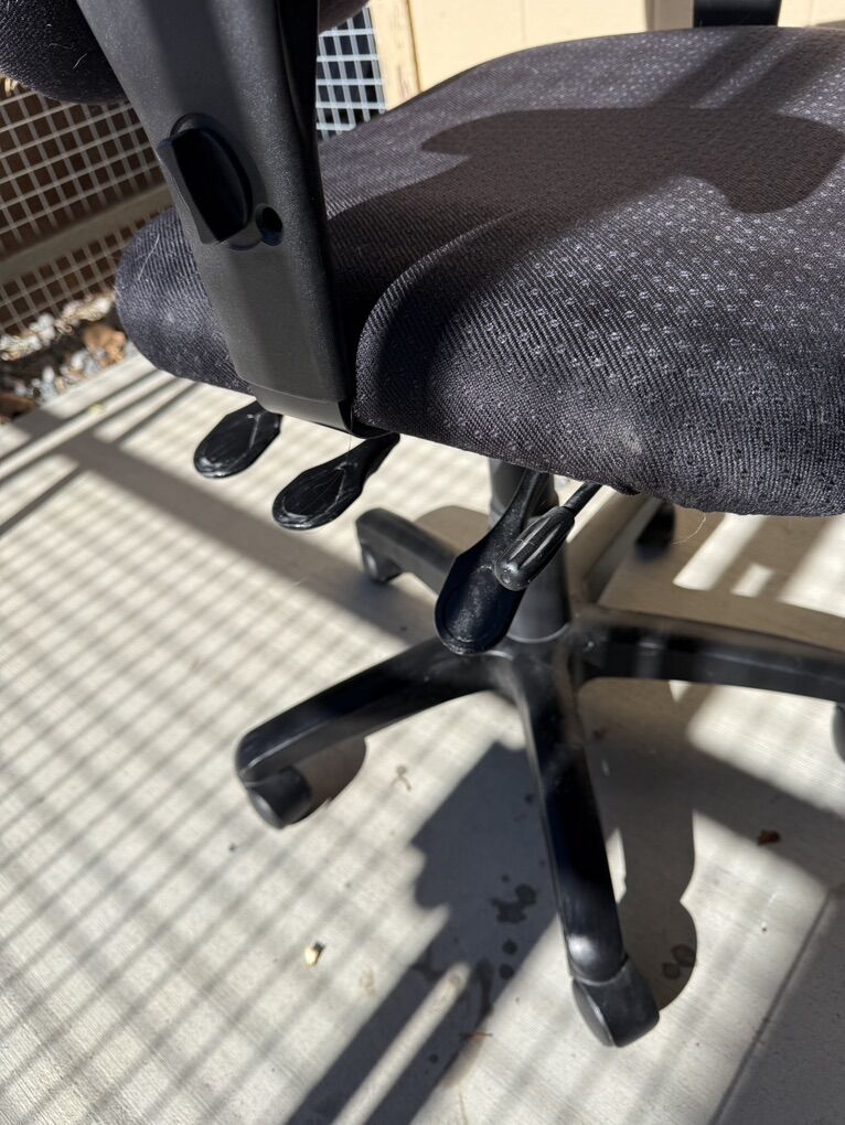 This is a great task chair with full ergonomic control. This is a more expensive chair that you can’t just buy at the local office supply store. It’s professional level with multiple adjustments. Great condition works well. Great for remote work at home or office. Heavy duty chair made to last