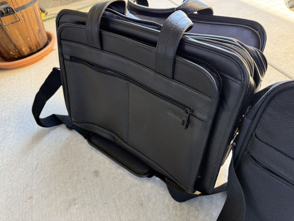 These are Samsonite bags for laptop or business use. One of them is brand new never been used full leather perfect condition. The other is a fabric material. These are the real deal Samsonite luggage bags.
