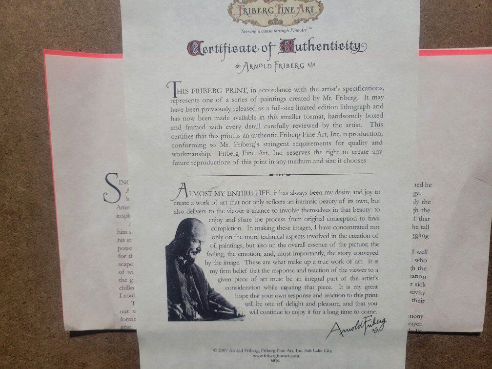 VenmoLithograph Print of “The Prayer At Valley Forge” by Arnold Friberg COA Included 17x24 See pictures for condition and coa information. minor scratches on left corner of frame as seen in pictures. text is best 801-645-3225 cash or venmo in person.