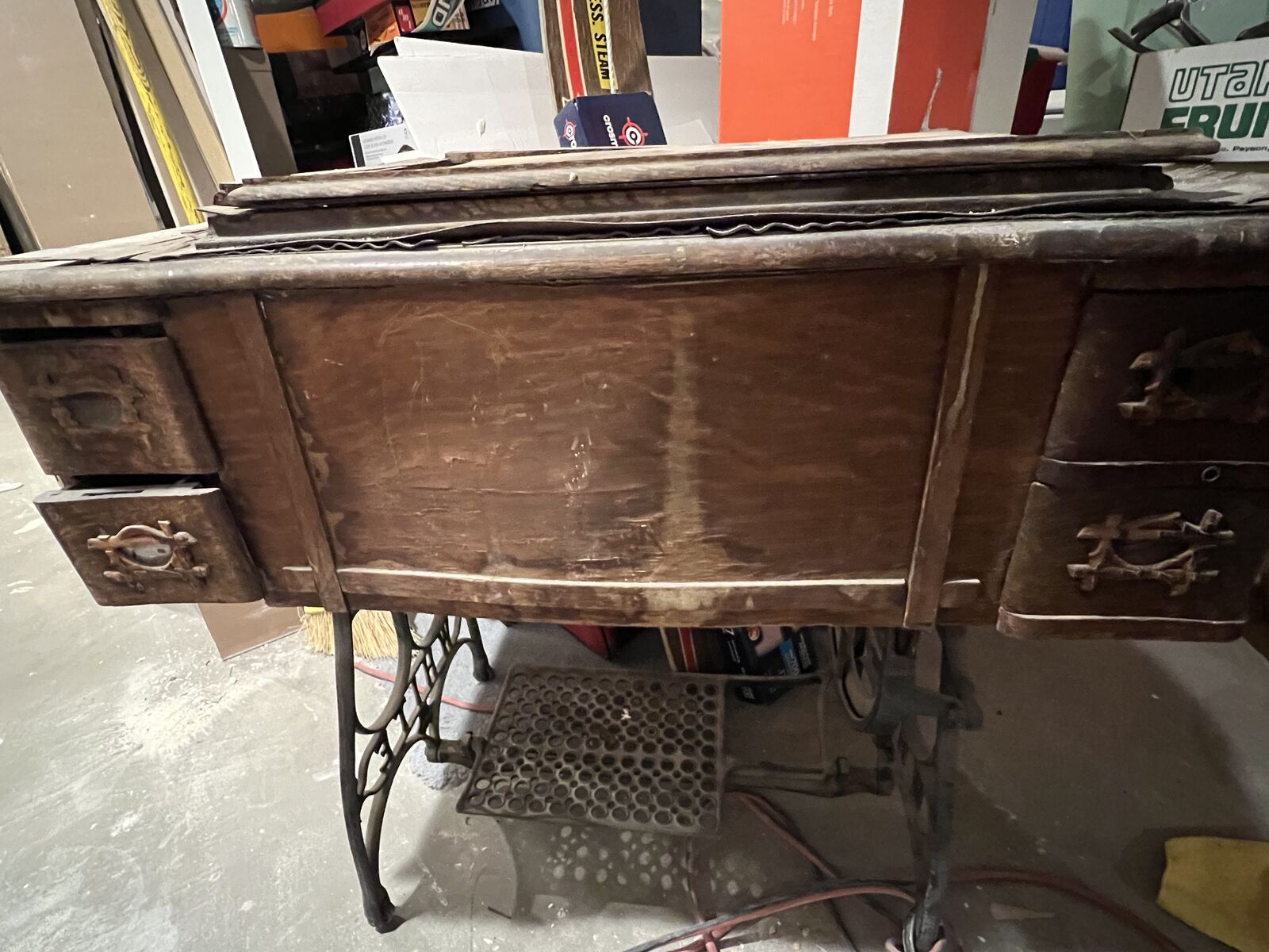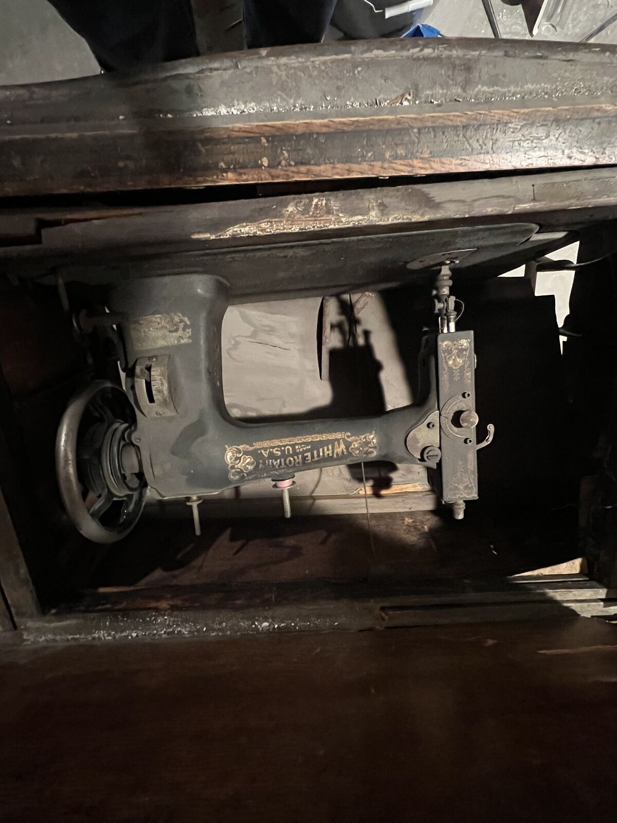 Antique Vintage Sewing Machine. Supposedly it works but we havent used it in years. Could be refinished/redone. Could also deliver depending on location.