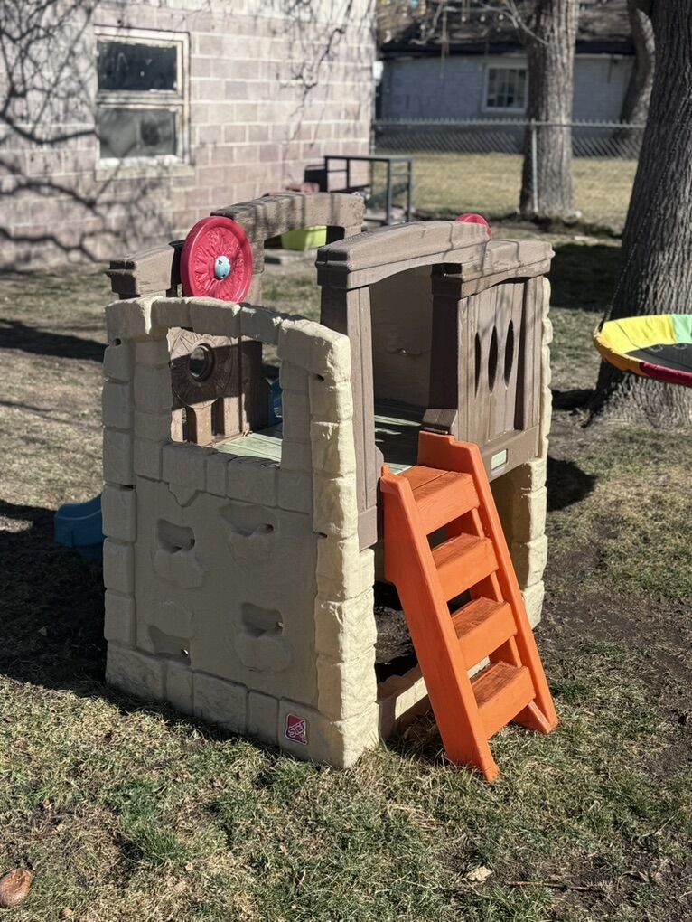 Venmo$399 if purchased from their website. Normal wear/dirt from being outside but nothing broken. My kids loved it, especially the 2 steering wheels. Dimensions in the photos