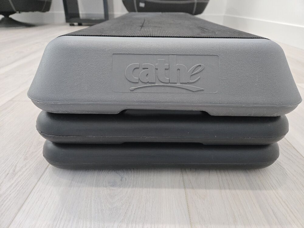 Excercise Step with four risers. It's in good condition, but does have a few scratches as shown in the pics. Cash only, I don't have venmo.
