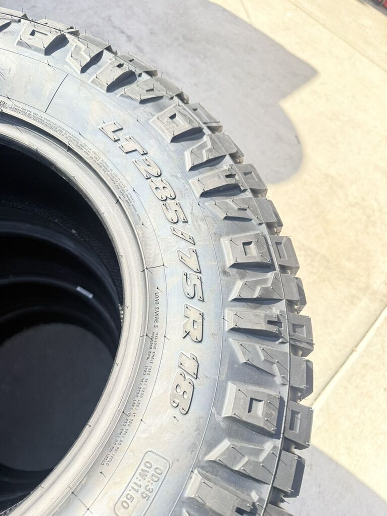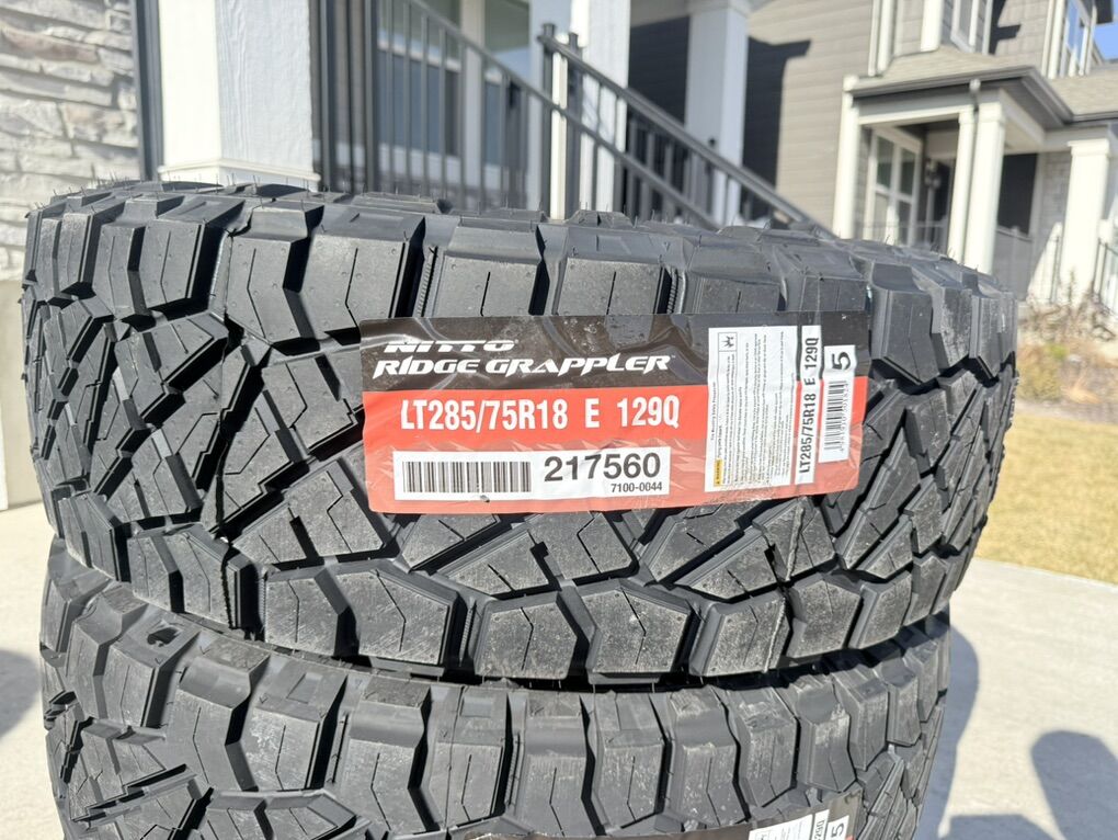 Set -4. 285/75R18 Nitto ridge grappler 10 ply tires Rated for 65000 miles