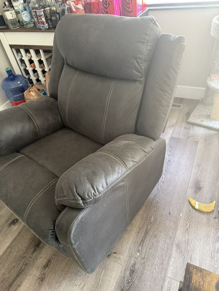 Reclaimer is in good shape. Was mostly in the corner of the living room so received minimal use. One corner has a little more wear from the animals rubbing against it.